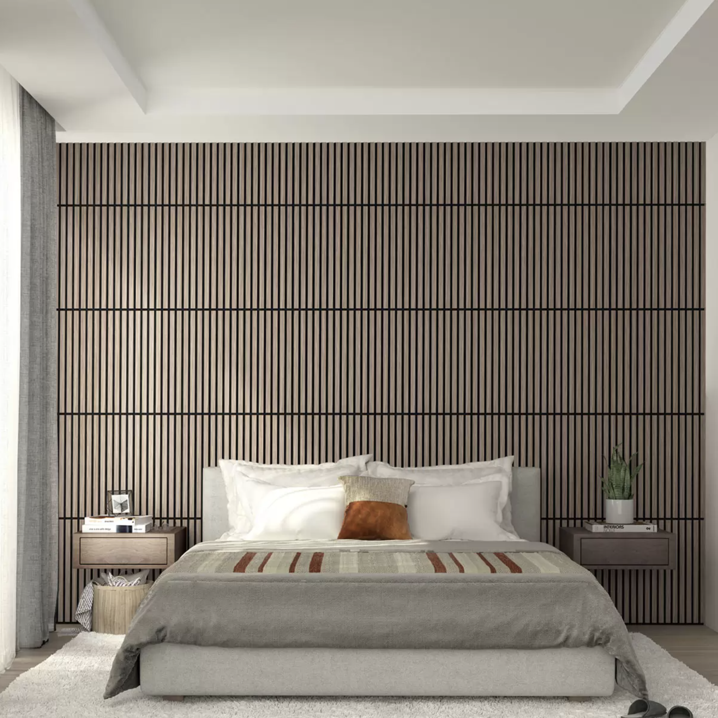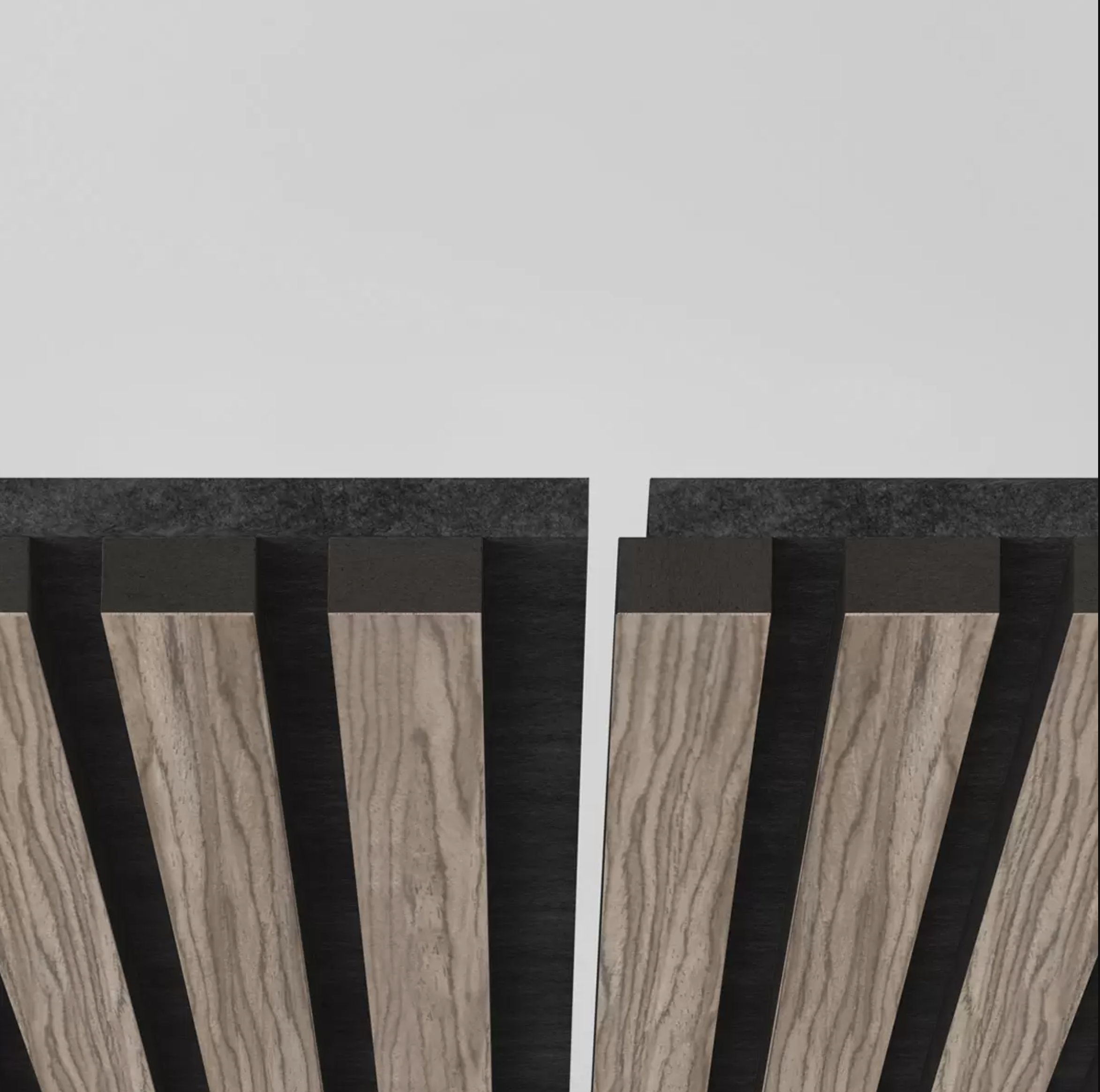 Ideal for home offices, living rooms, studios or commercial spaces, the panels are easy to install and suitable for both walls and ceilings. Made with acoustic felt and decorative slats, they combine performance with contemporary design.
