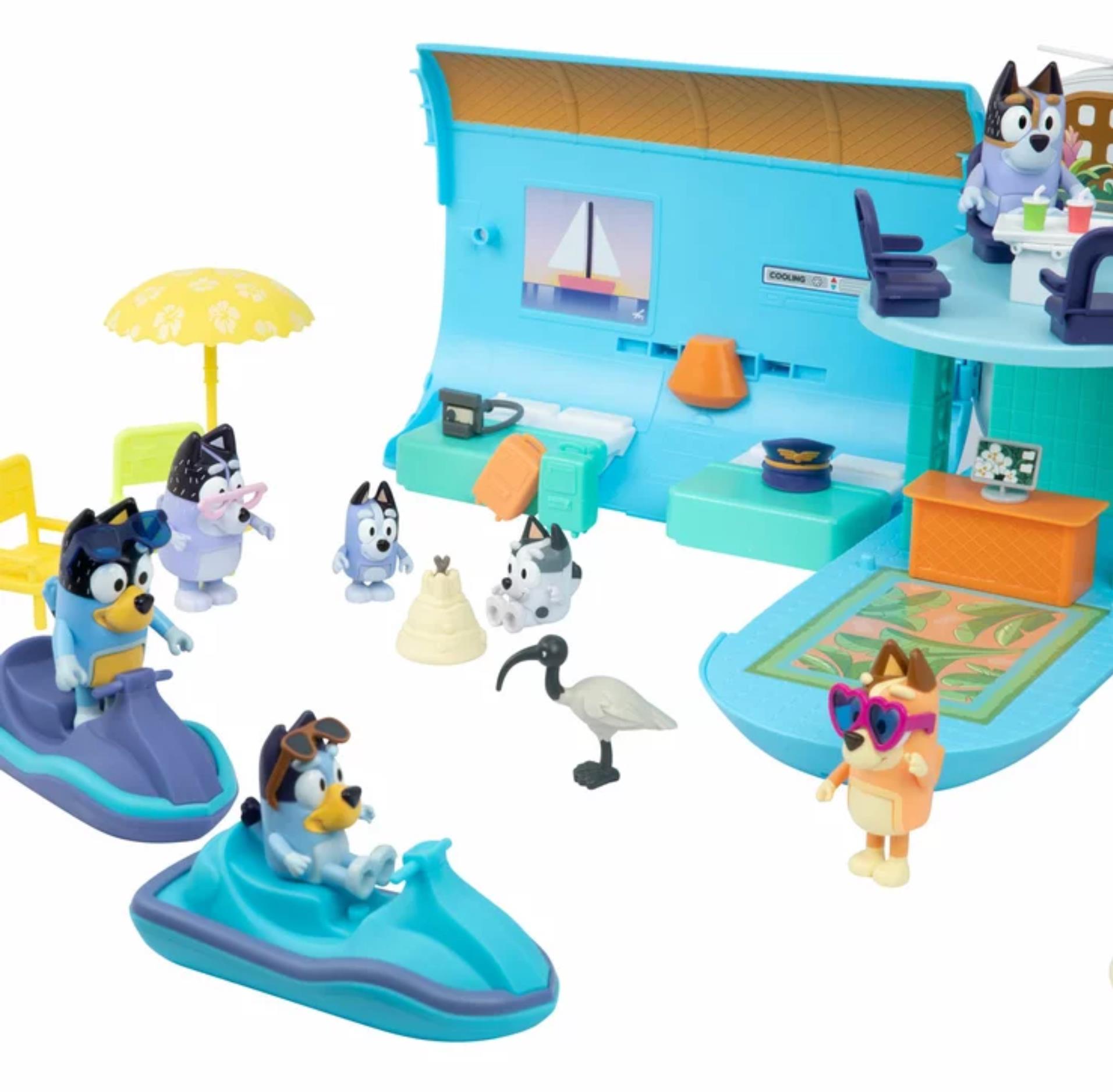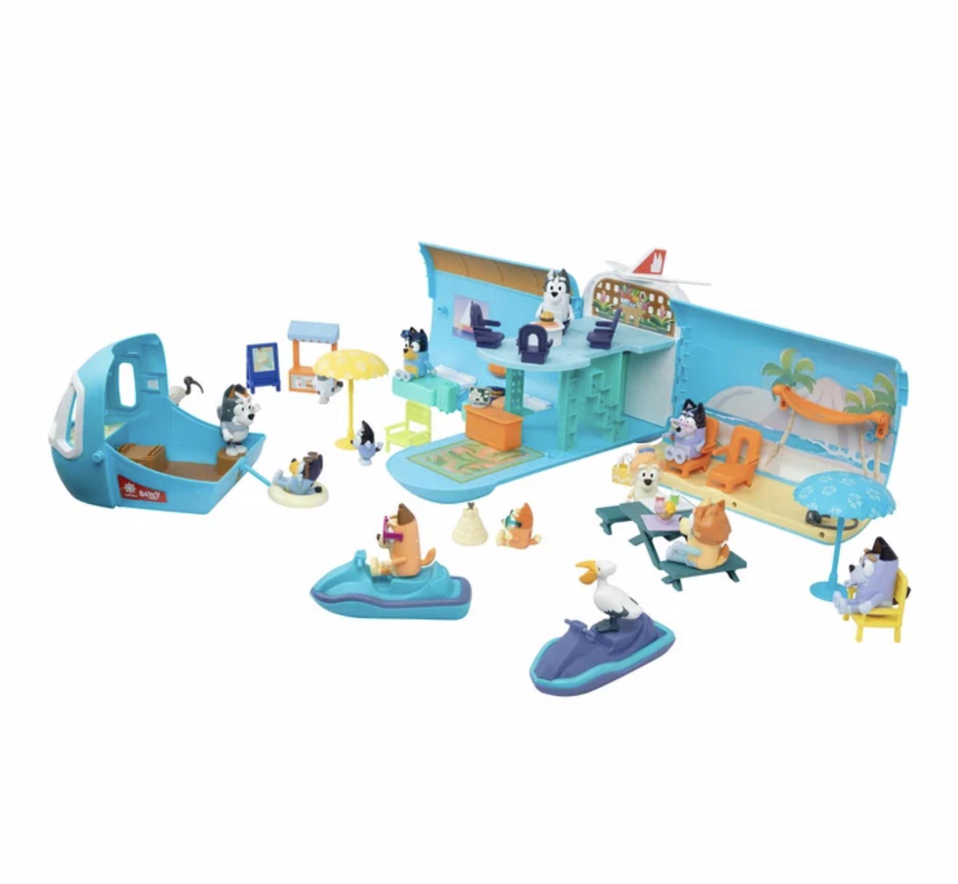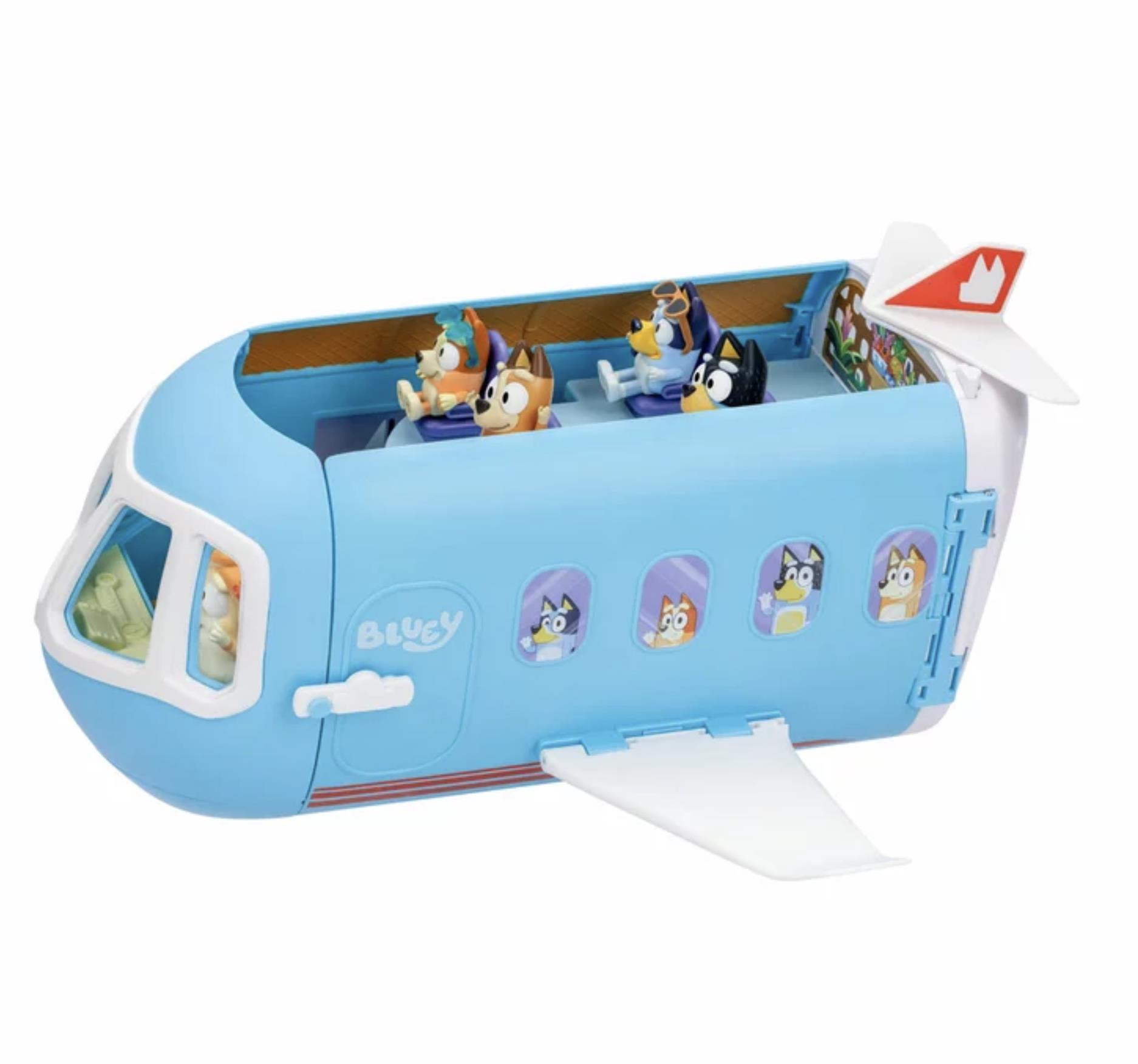 Packed with over 25 sounds and phrases from the show, this feature-filled playset includes 12 beloved Bluey characters: Pilot Bluey, Bingo, Chilli, Bandit, Grandpa Bob, Nana, Uncle Stripe, Trixie, Muffin, Socks, Uncle Rad, and Frisky.
