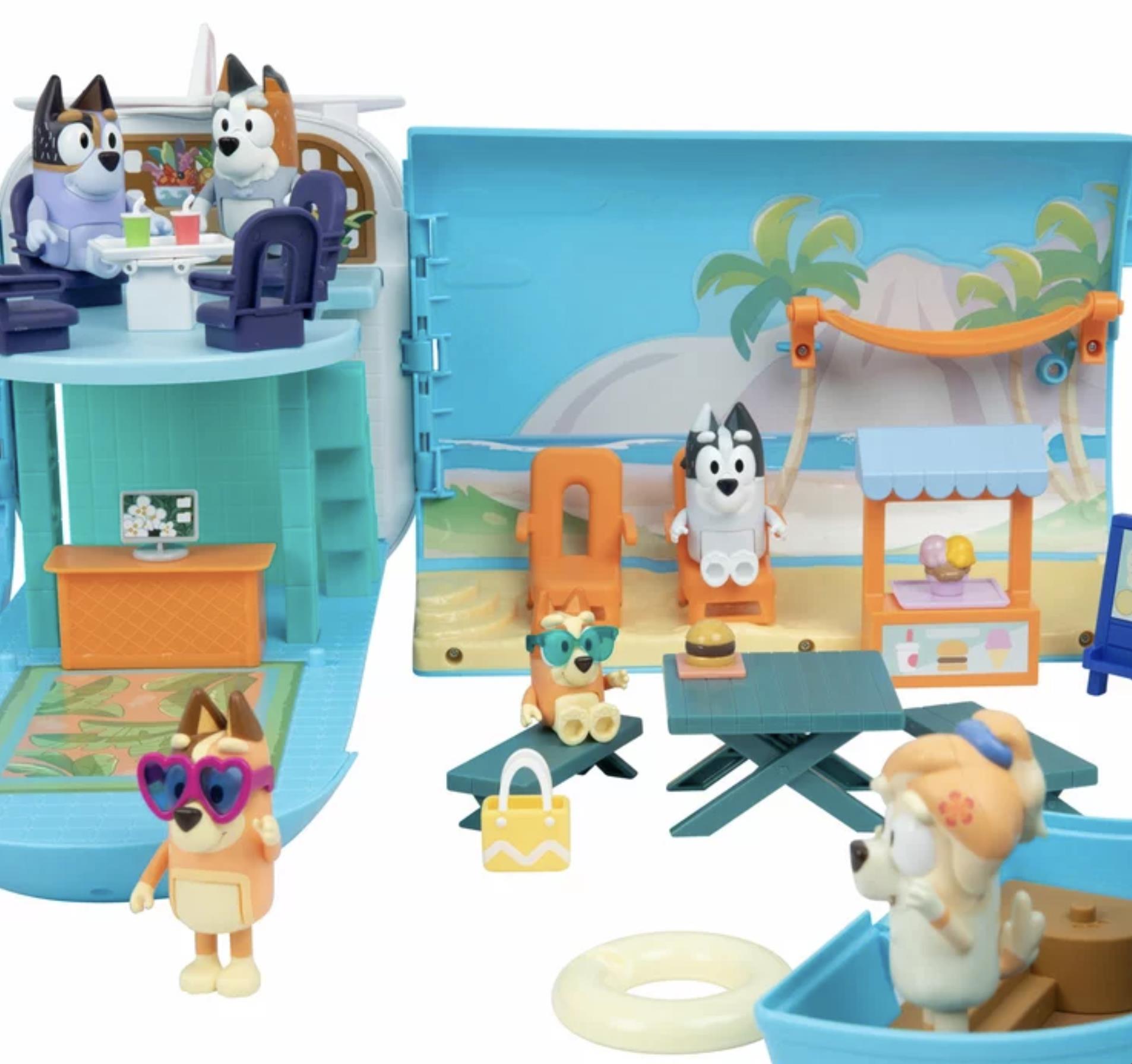 Take playtime to new heights with the Bluey 3-in-1 Transforming Airplane Mega Playset! This exciting set transforms from a plane into a resort and a boat, creating endless fun for every Bluey fan.