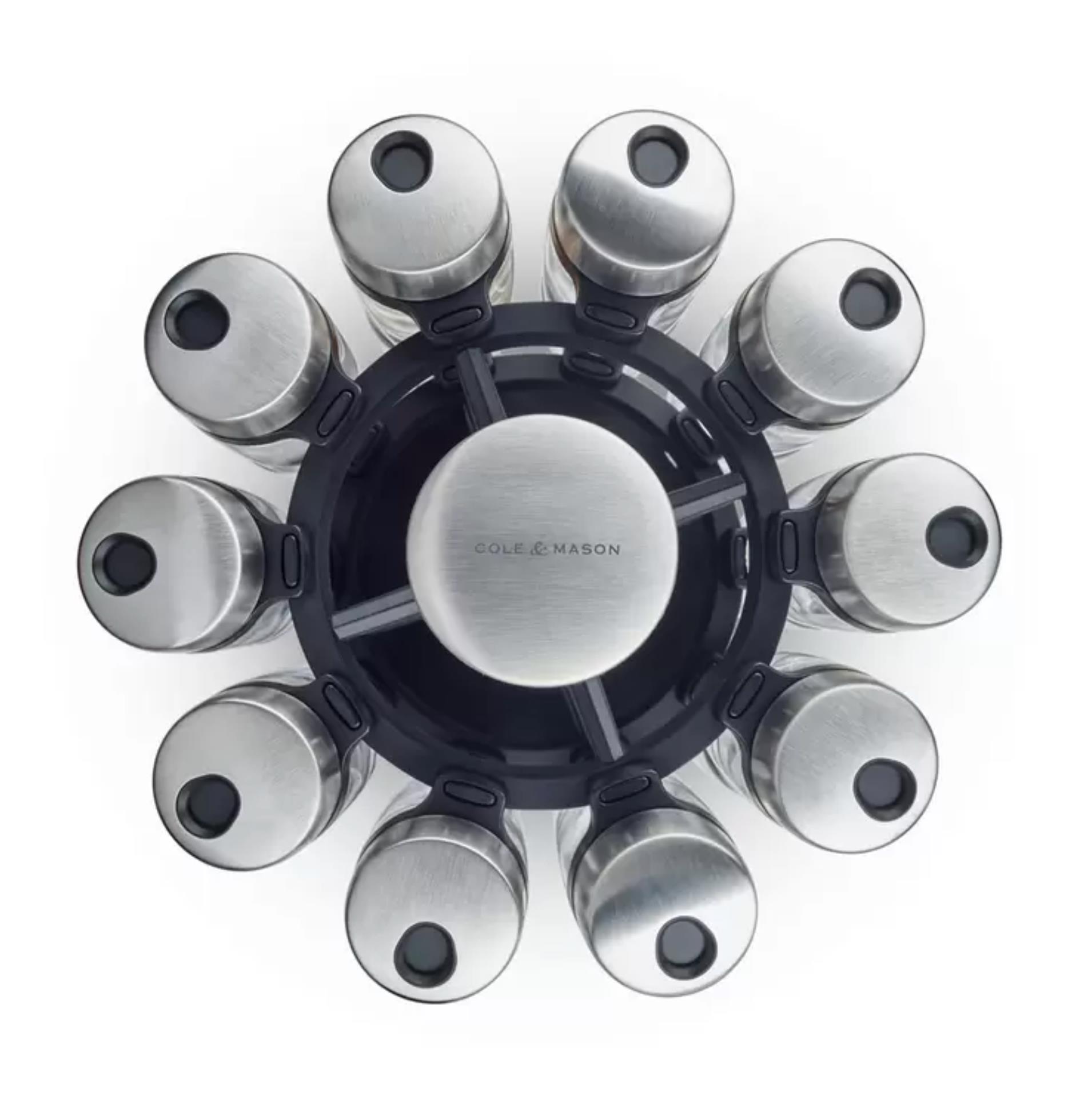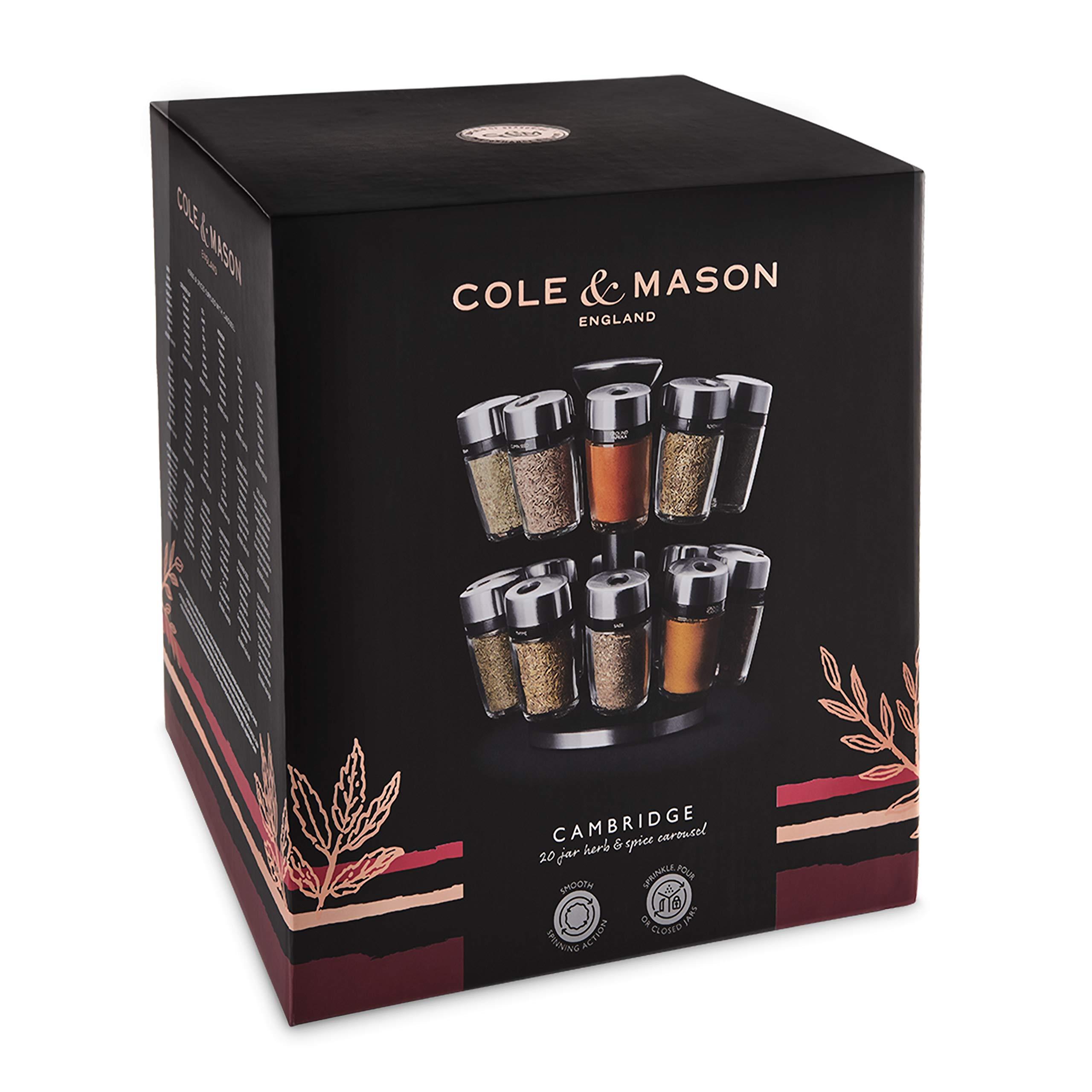 Cole & Mason 20-Jar Filled Spice Rack Carousel with Adjustable Lids & Rotating Stand