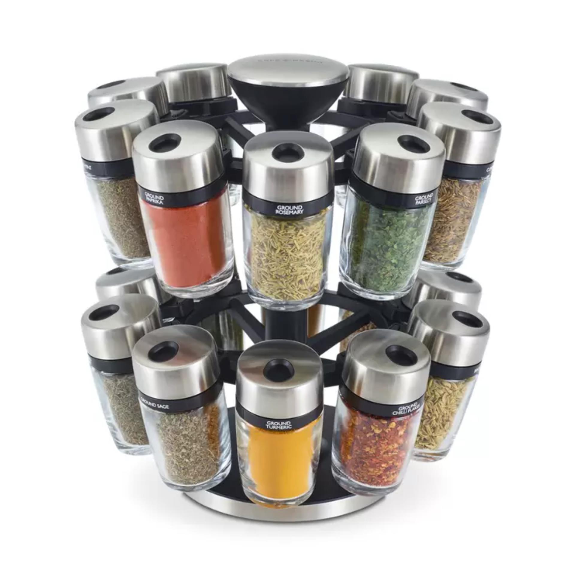 • 20-jar rotating spice carousel with smooth-spin base for easy access