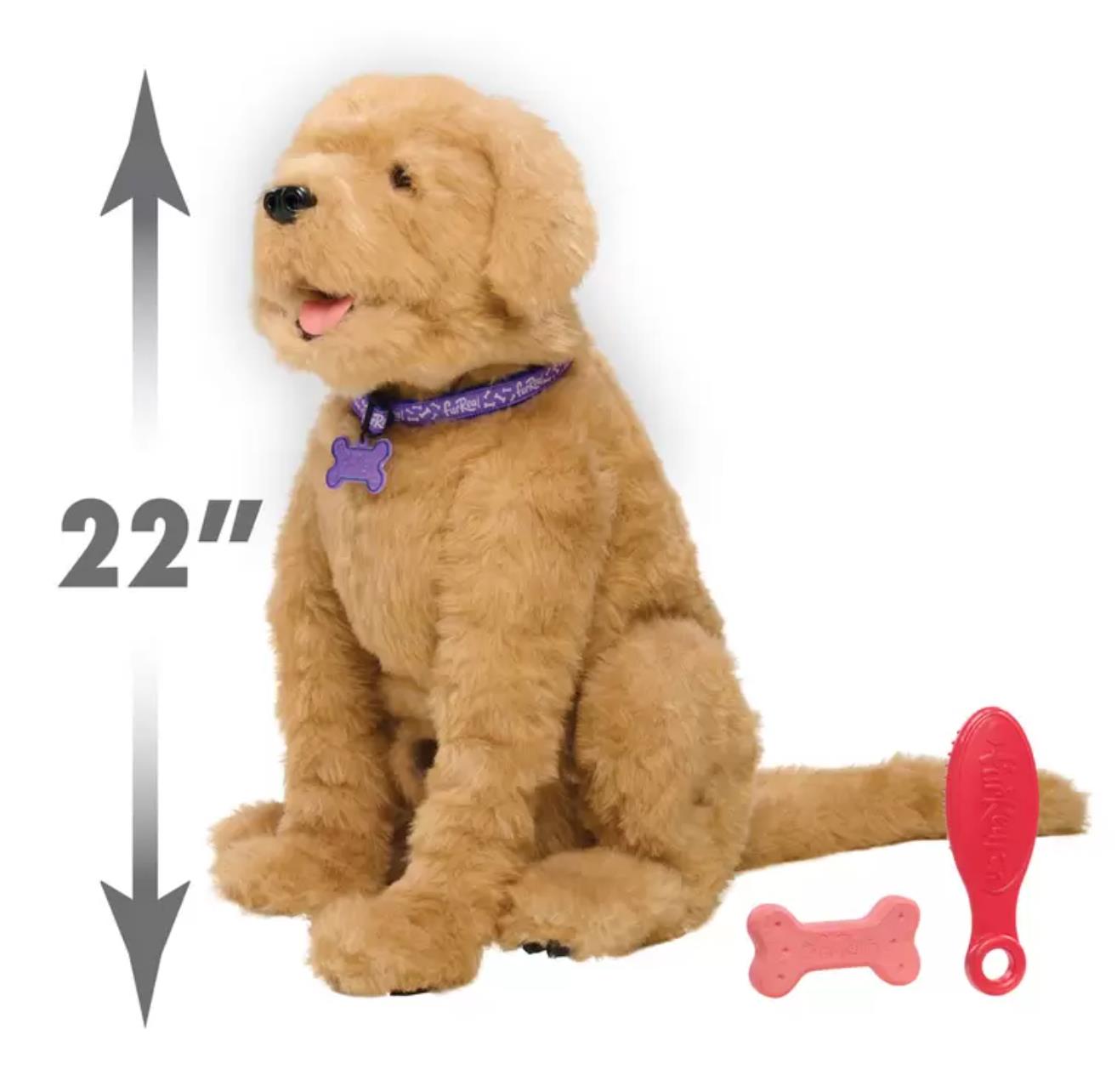 She features super-soft plush tan fur, big soulful eyes and makes lots of engaging barks, yelps, and other fun sound effects.