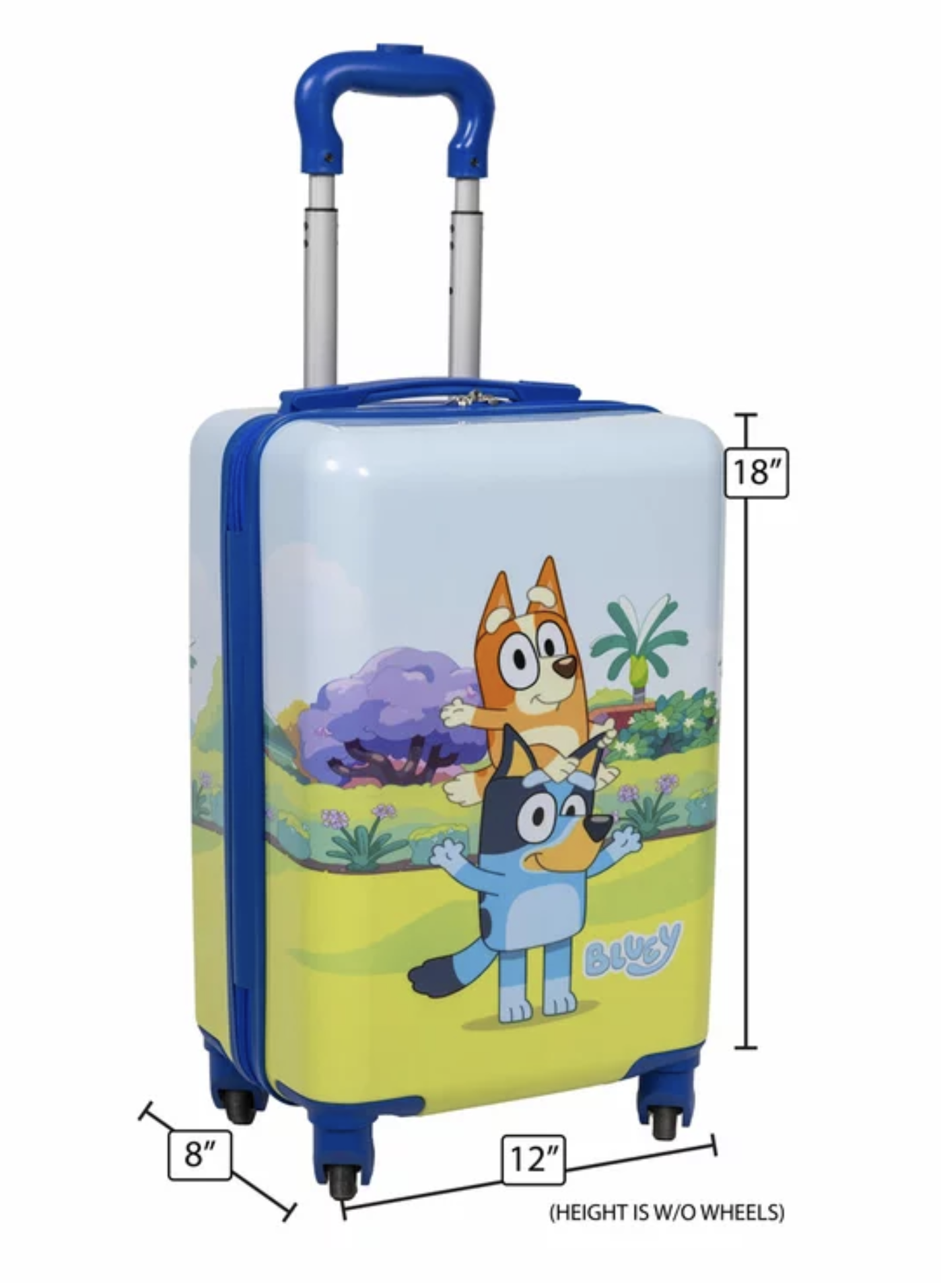 Make travelling fun and easy with this Kids 2 Piece Luggage Set, available in three popular designs: Bluey, Disney Stitch, or Marvel Spider-Man. Each set includes a hard-sided spinner suitcase, matching backpack, and a bonus character luggage tag — perfect for holidays, sleepovers, and day trips.