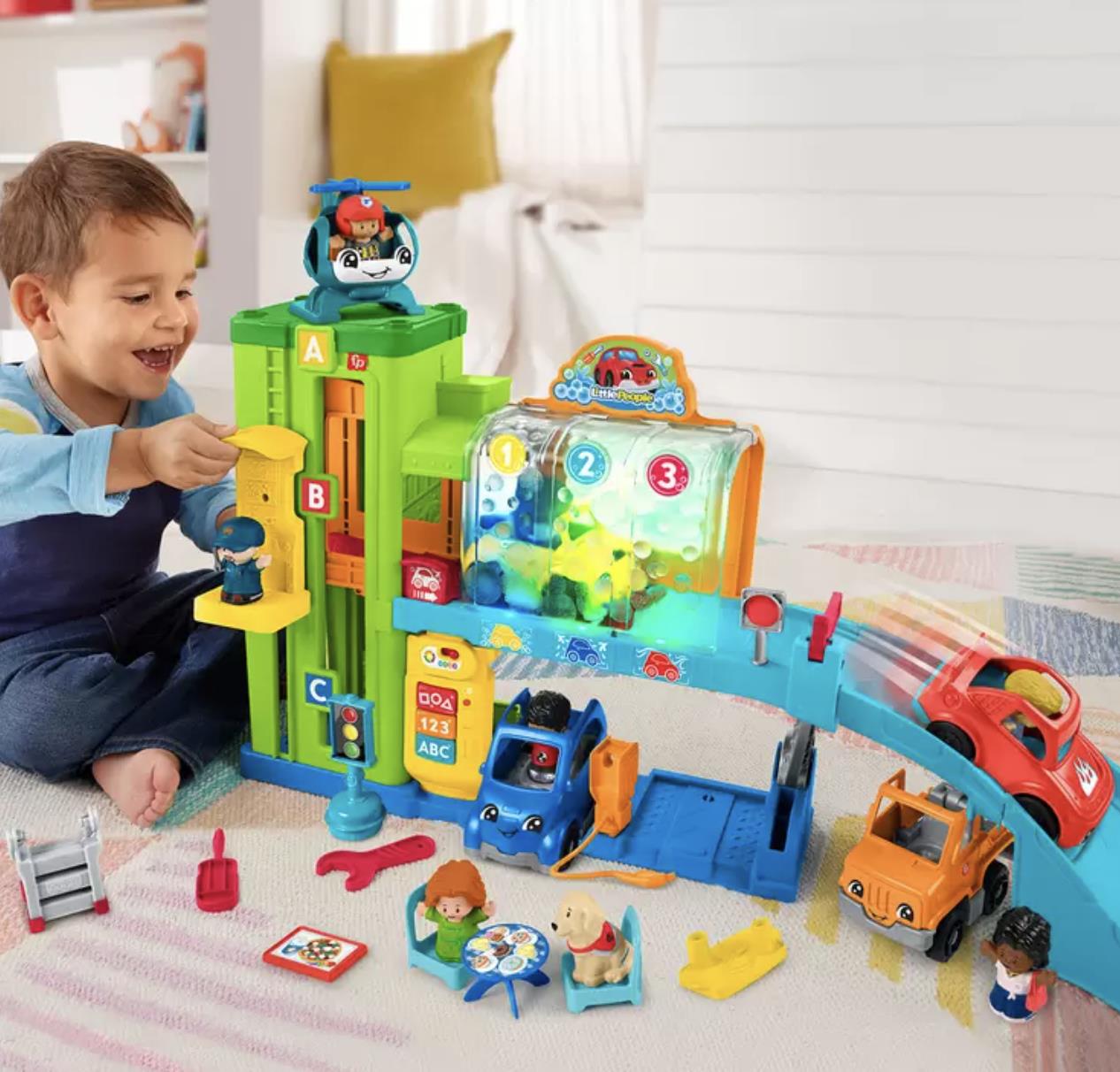 - This bundle includes an interactive car garage playset, plus 5 toy vehicles, 8 character figures, and 9 accessories to enhance the pretend play