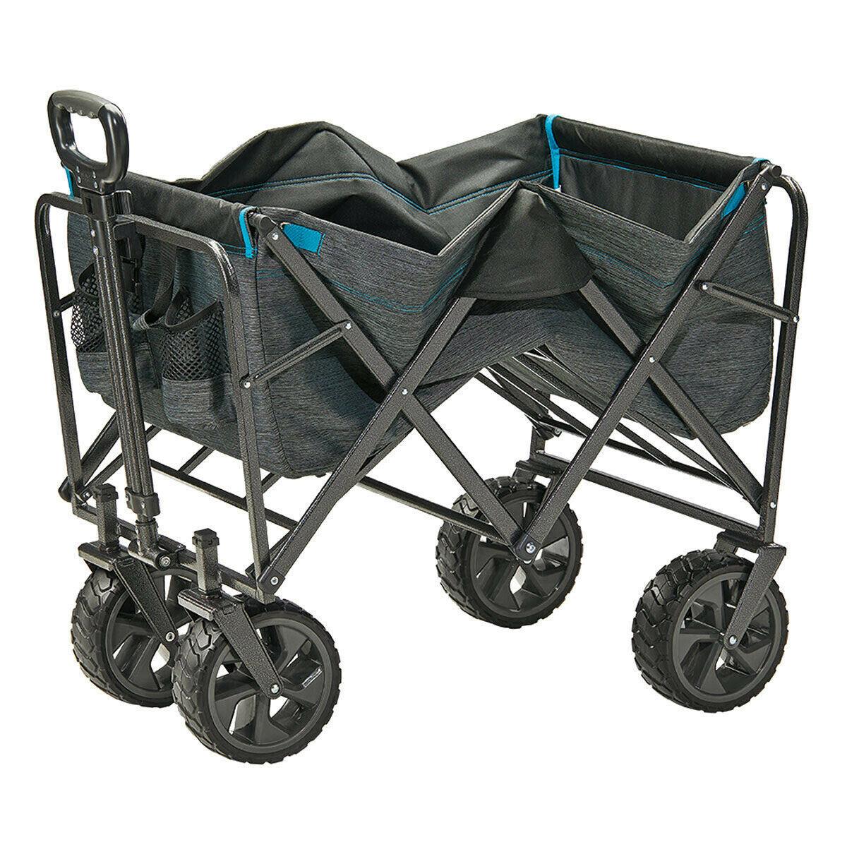 The Mac Sports XL Folding Wagon is great for sporting events, outdoor adventures, grocery shopping and much more! The durable large wheels allow effortless transport across multiple surfaces. The Cargo Net easily secures itself firmly with heavy duty hooks at each end of the net along with stretchy-extendable elastic cords to even further extend the capacity of your wagon. No assembly required and collapses conveniently for easy storage.