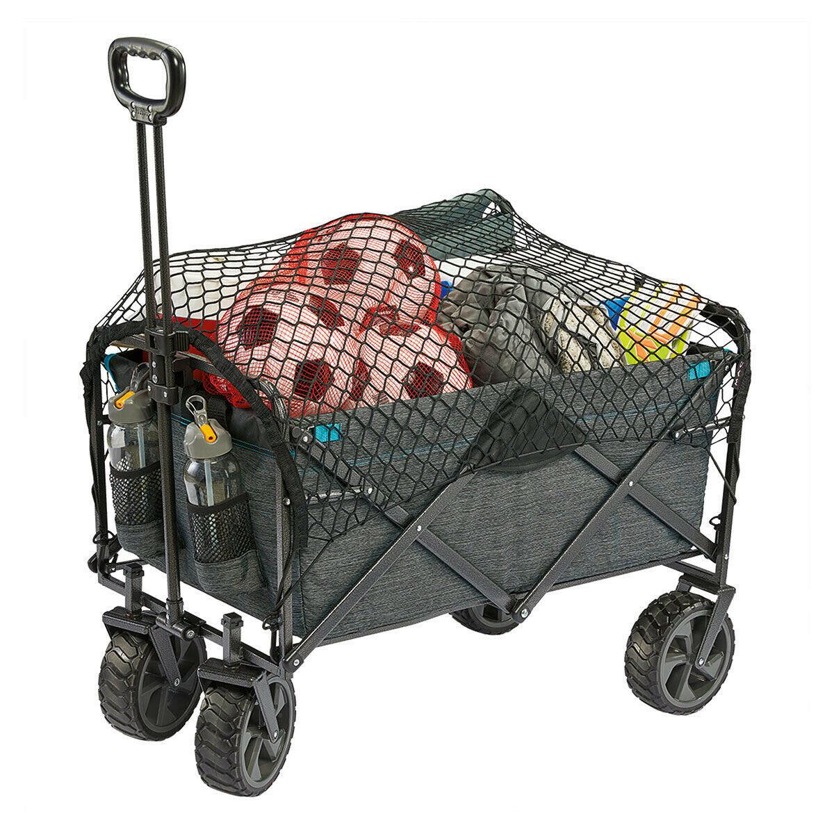 Mac Sports XL Steel Easy Fold Collapsible Wagon Cart with Cargo Net – 136kg Max Capacity