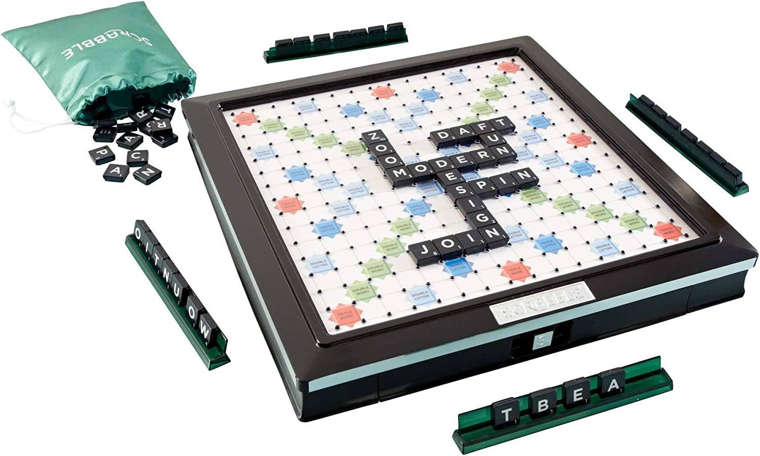 Mattel Scrabble Y9584 Deluxe Set Tile Lock Gameboard Easy Spin Turntable