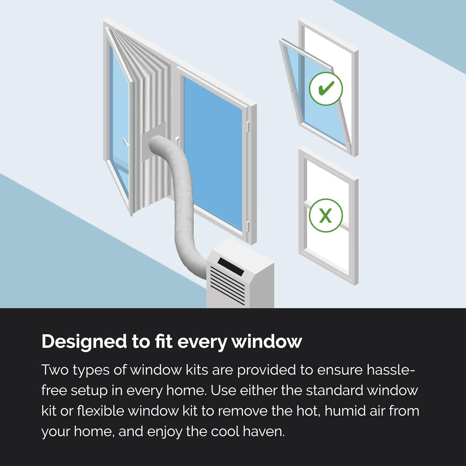 Air conditioning units are most effective when the duct can be positioned outside a window. This expels any excess heat outside and the unit doesn’t have to work as hard. The MeacoCool comes with a window kit suitable for standard windows and sliding doors – Meaco have also included a flexible window kit which works on all windows and doors ensuring the MeacoCool works in your home or office. The use of a window kit prevents warm air from outside entering the room, making the cooling more efficient.