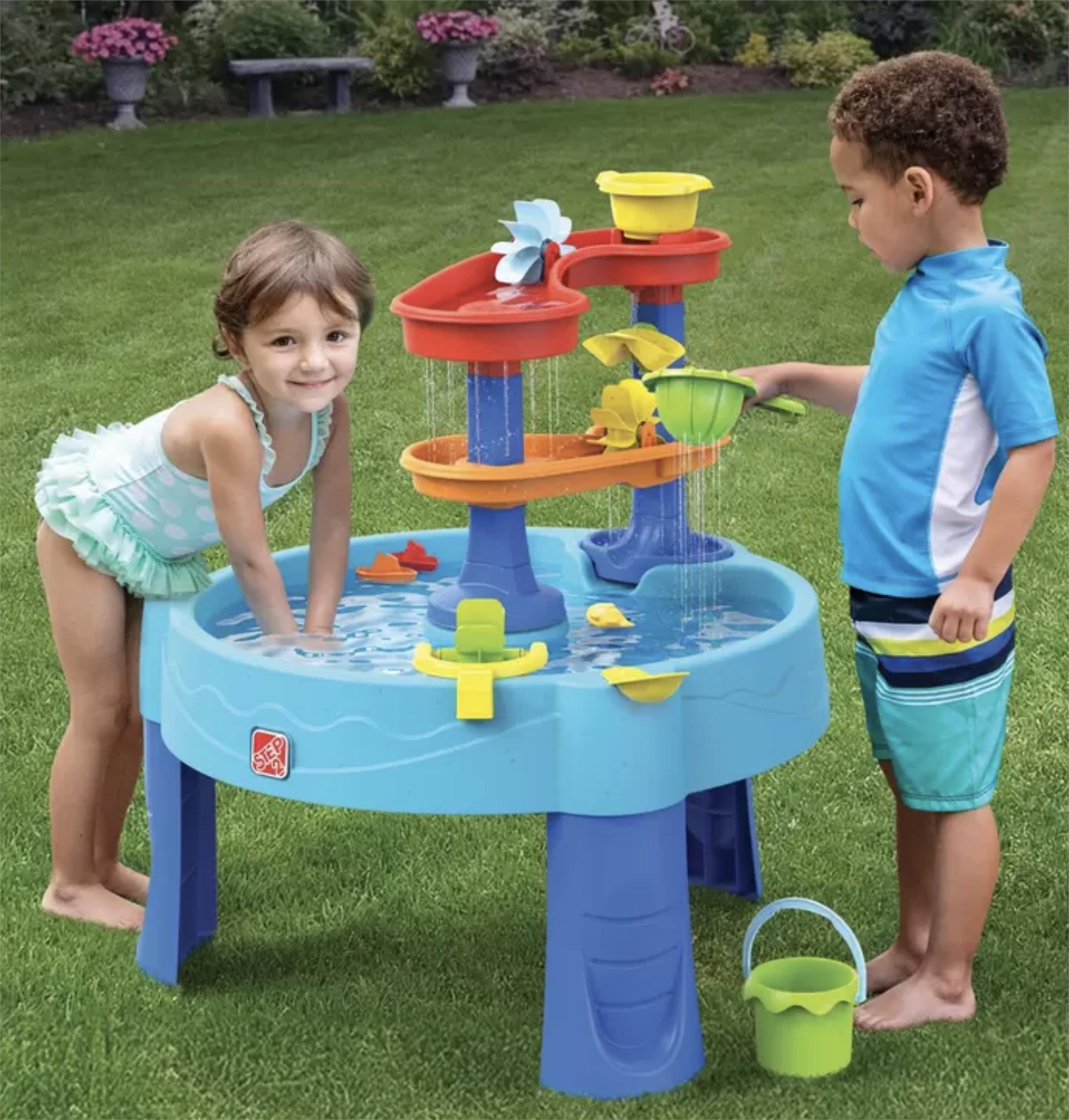 Make a splash with the Step2 Double Cascade Rapids Water Table! Featuring cascading water action, interactive spinners, and fun accessories, it’s perfect for social, sensory play for multiple toddlers.