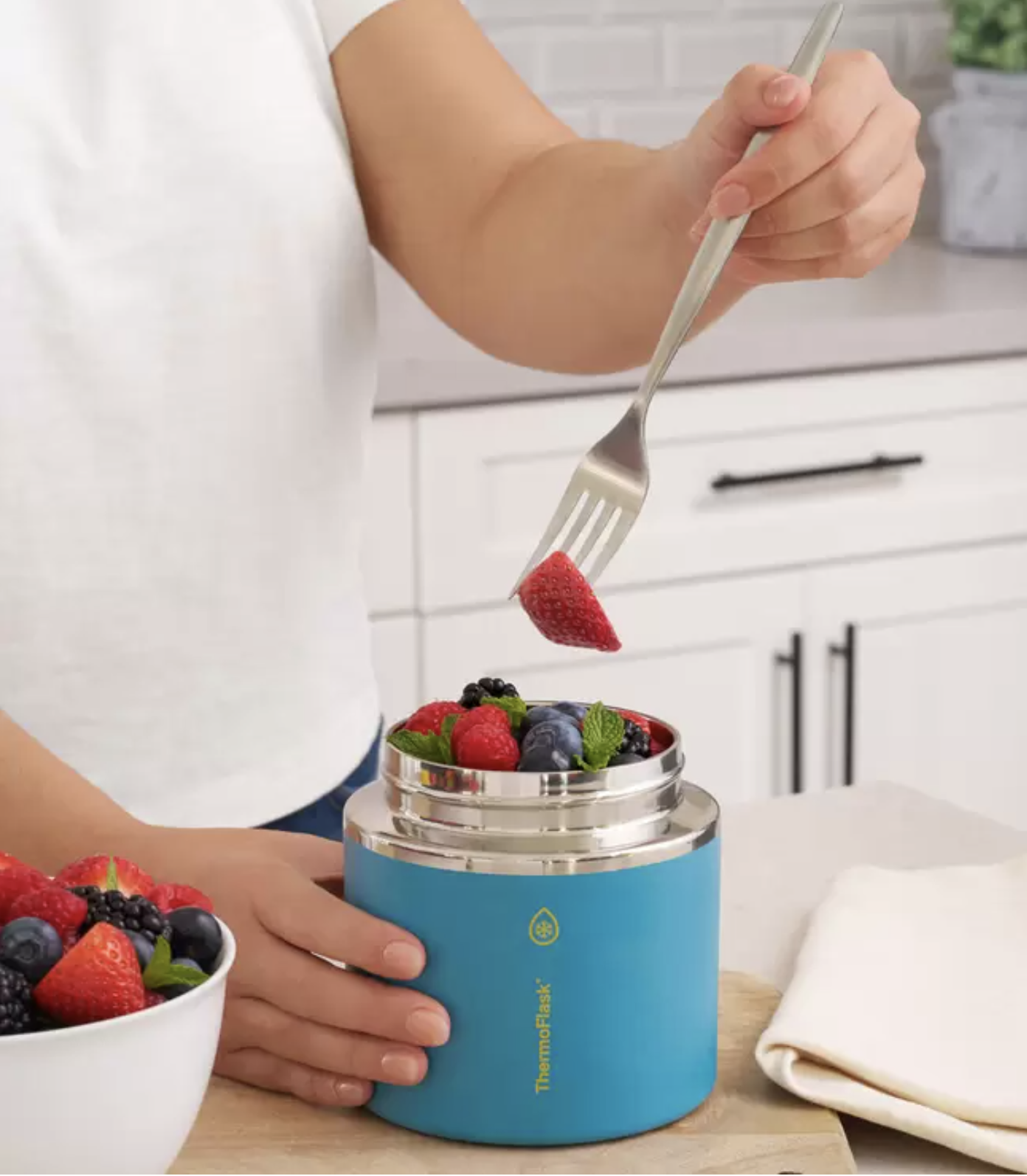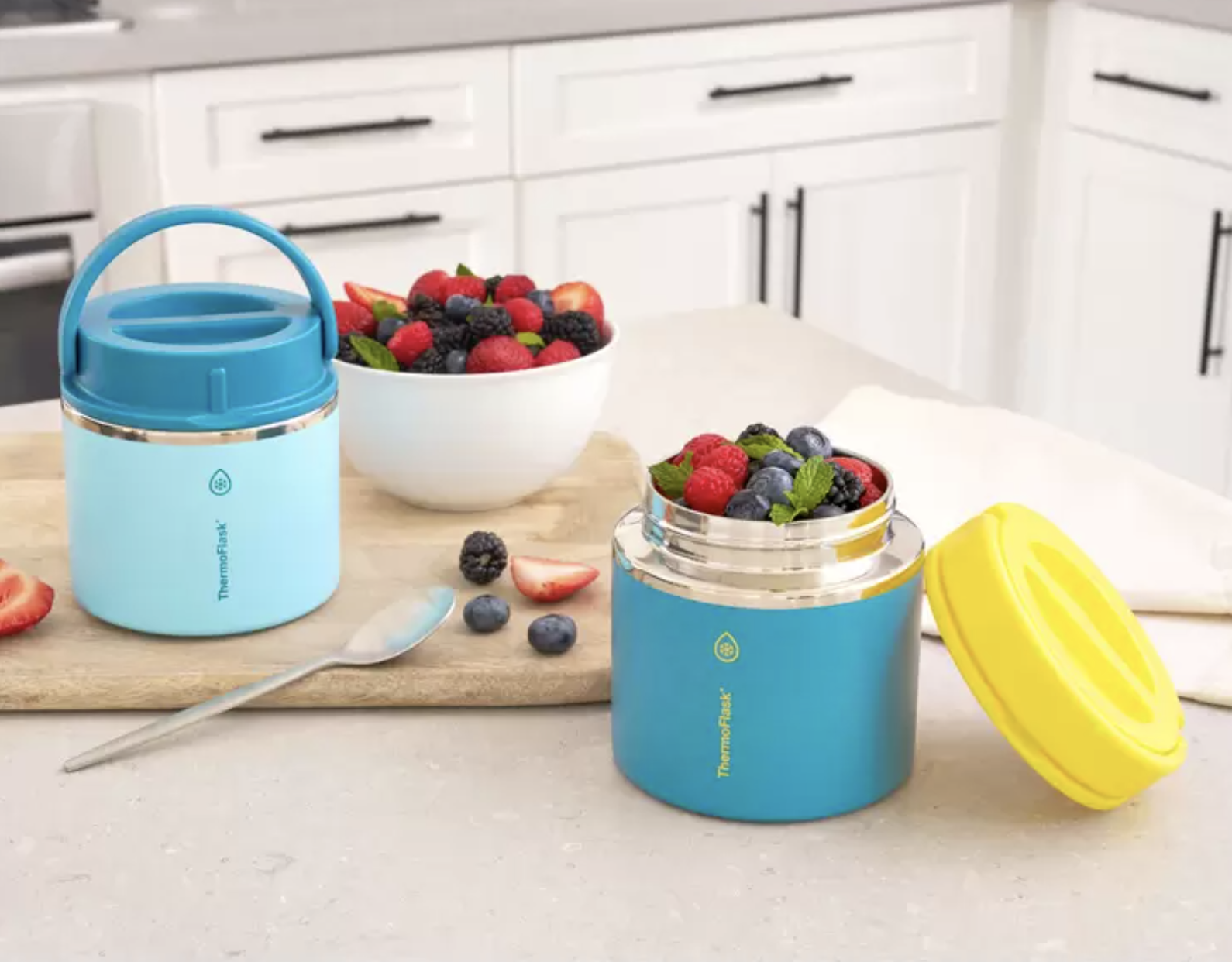 The ThermoFlask Food Jar keeps food hot for 12 hours or cold for 24 hours using its Temp-Lock™ technology. Perfect for everything from packing a warm lunch to keeping fruit cool and fresh during outdoor activities, it’s an essential upgrade from conventional food storage. The lid of the jar screws on to form a leak-proof seal so it’s lunch box safe, and boasts an easy grip handle, making it convenient to take anywhere. The silicone base ensures no slipping and is gentle on surfaces plus our jars are dishwasher safe and BPA-free.