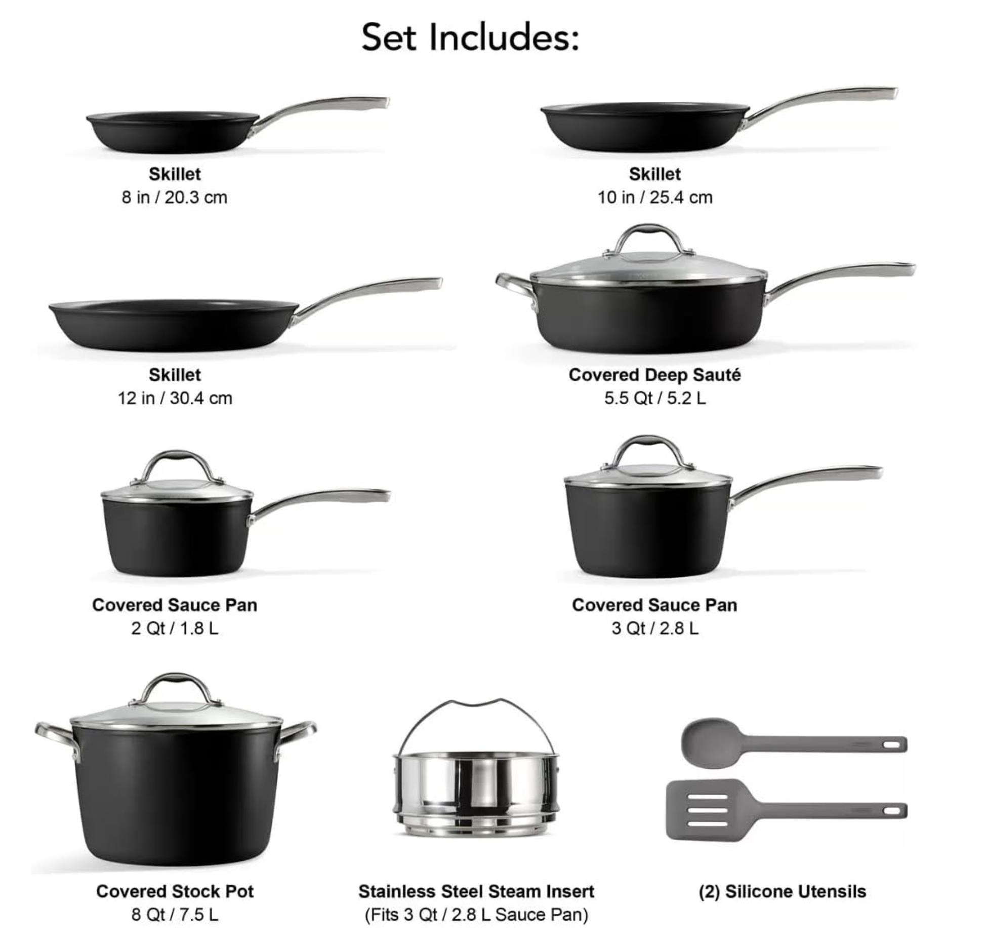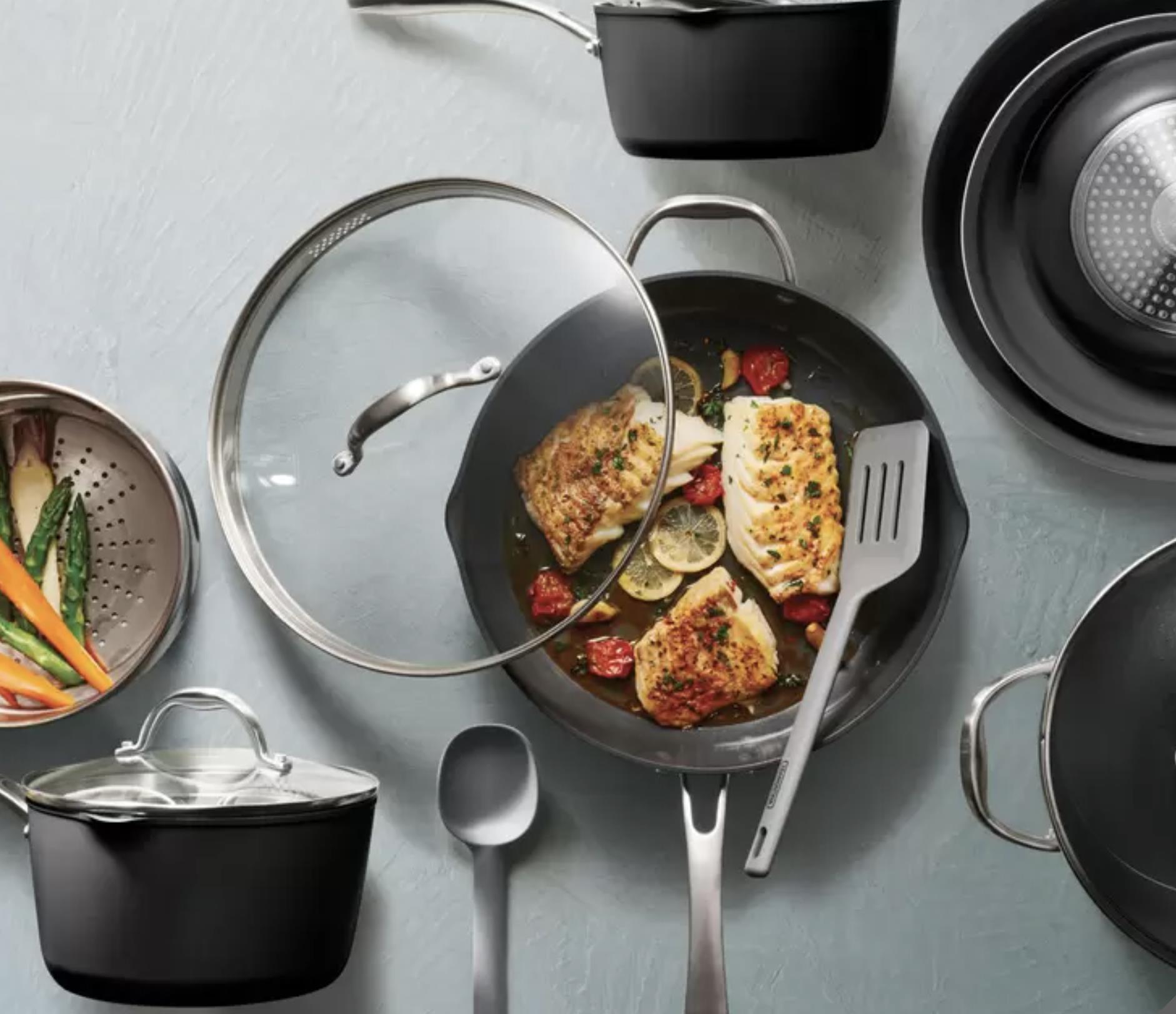 Complete with a stainless-steel steamer insert and two silicone utensils, this Tramontina set is perfect for everything from quick weekday meals to elegant dinners.
