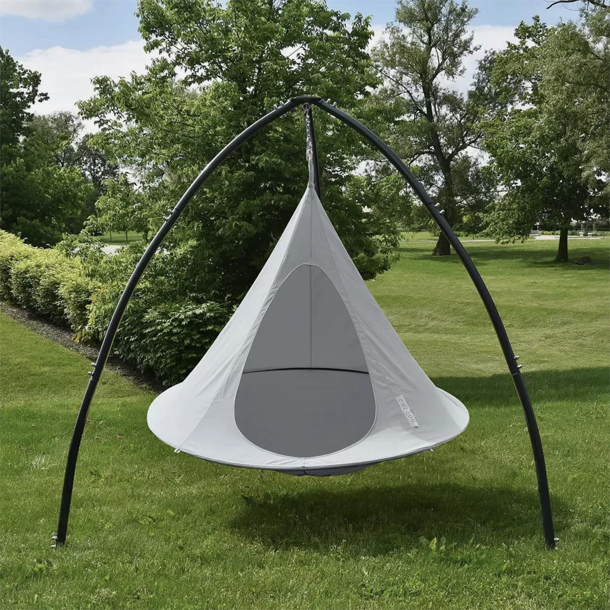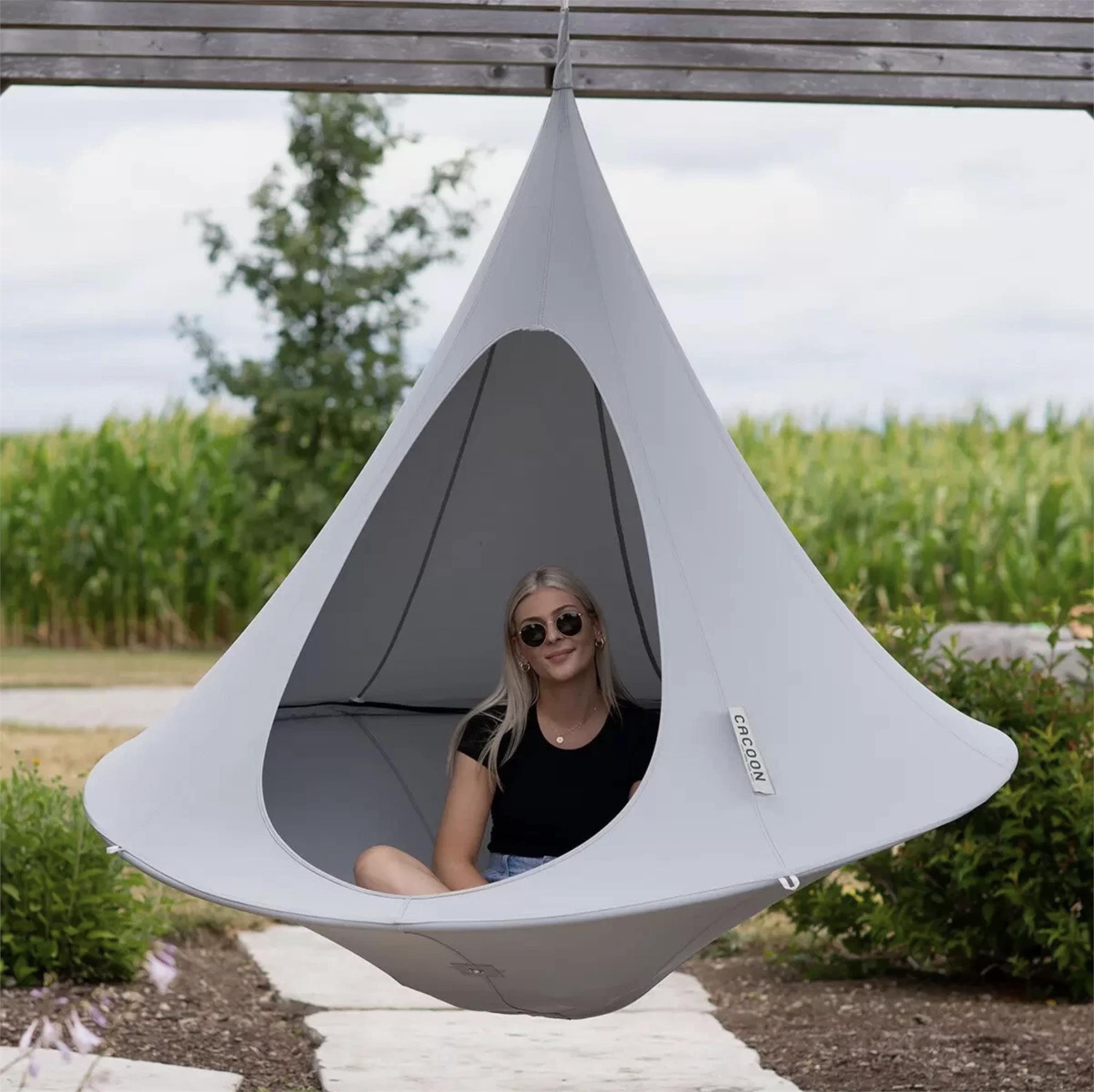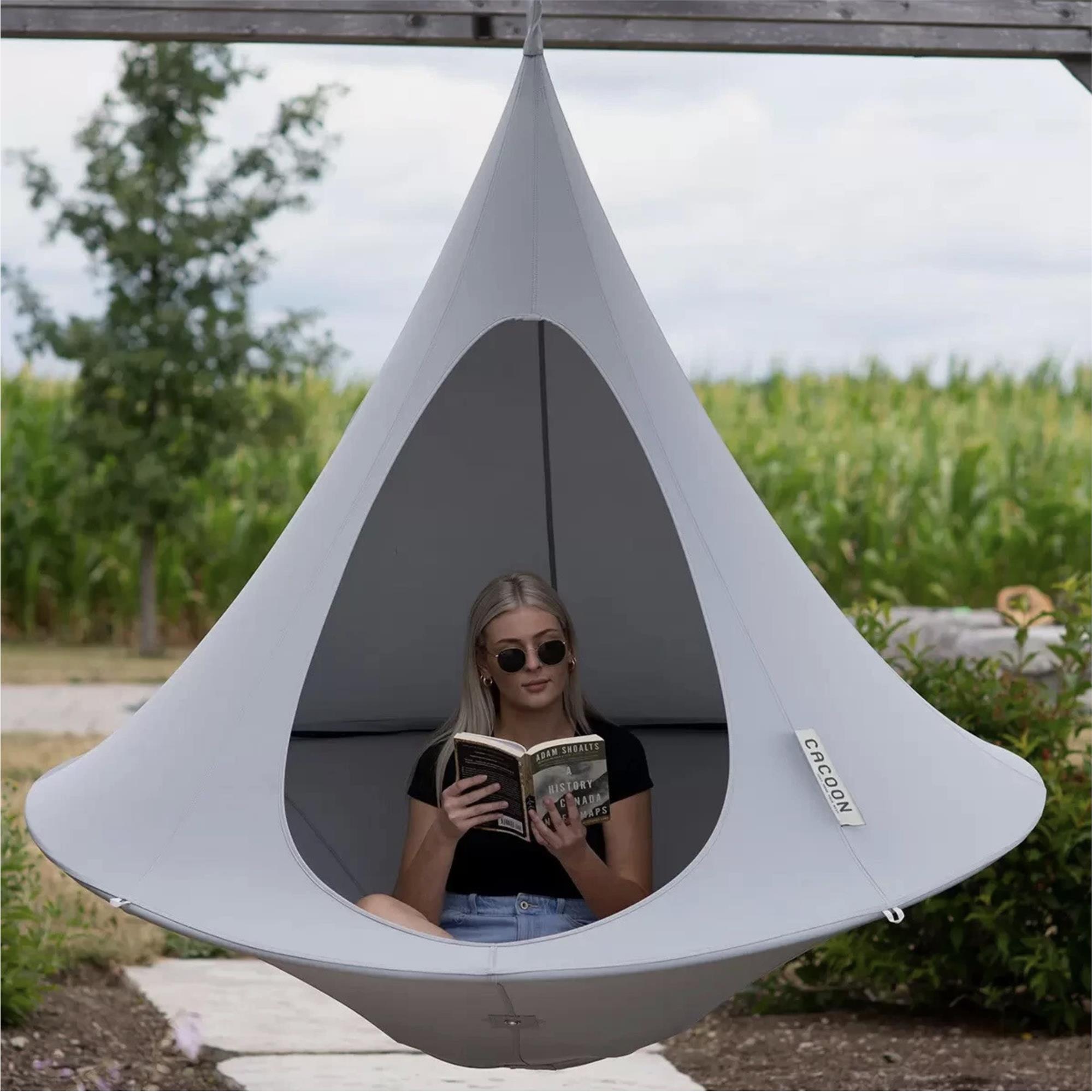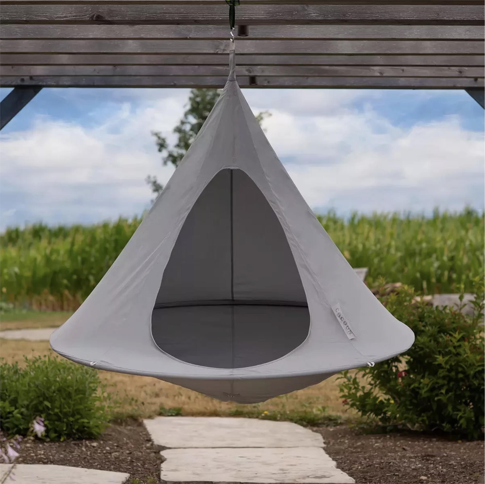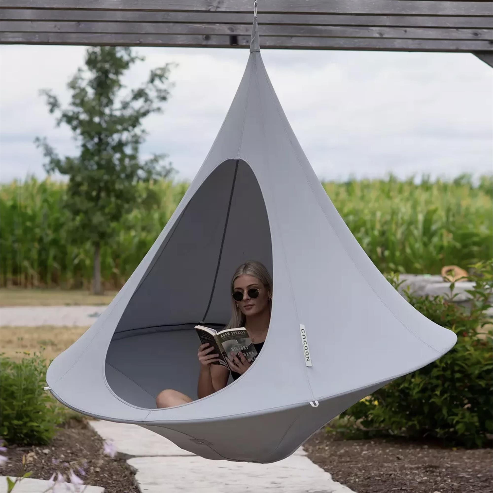 Transform your outdoor space with Vivere’s Double Cacoon, a perfect blend of comfort and style. Designed for two, its spacious interior offers unmatched relaxation while its durable, weather-resistant materials ensure lasting quality. The elegant, breathable fabric and sturdy steel frame provide stability and charm, making it an inviting retreat for any patio or garden. Shaded and comfortable, the Cacoon is a perfect hideout for occupants in any outdoor living space (deck, patio, garden, campsite etc.), and indoor living area. Whether you’re reading, lounging, or daydreaming, Vivere’s Double Cacoon creates the ultimate sanctuary for unwinding in style and comfort.