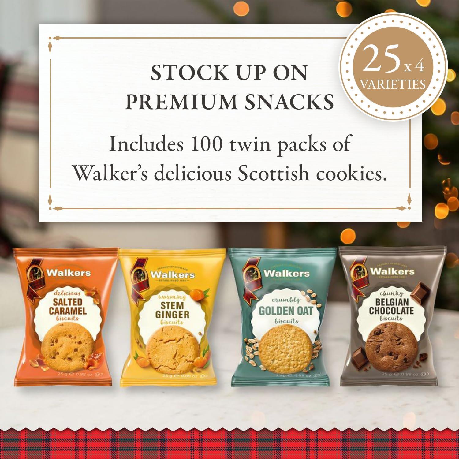 Walkers Assorted Biscuits Mini Packs, 100 x 25g – Ginger, Caramel, Golden Oat, Chocolate