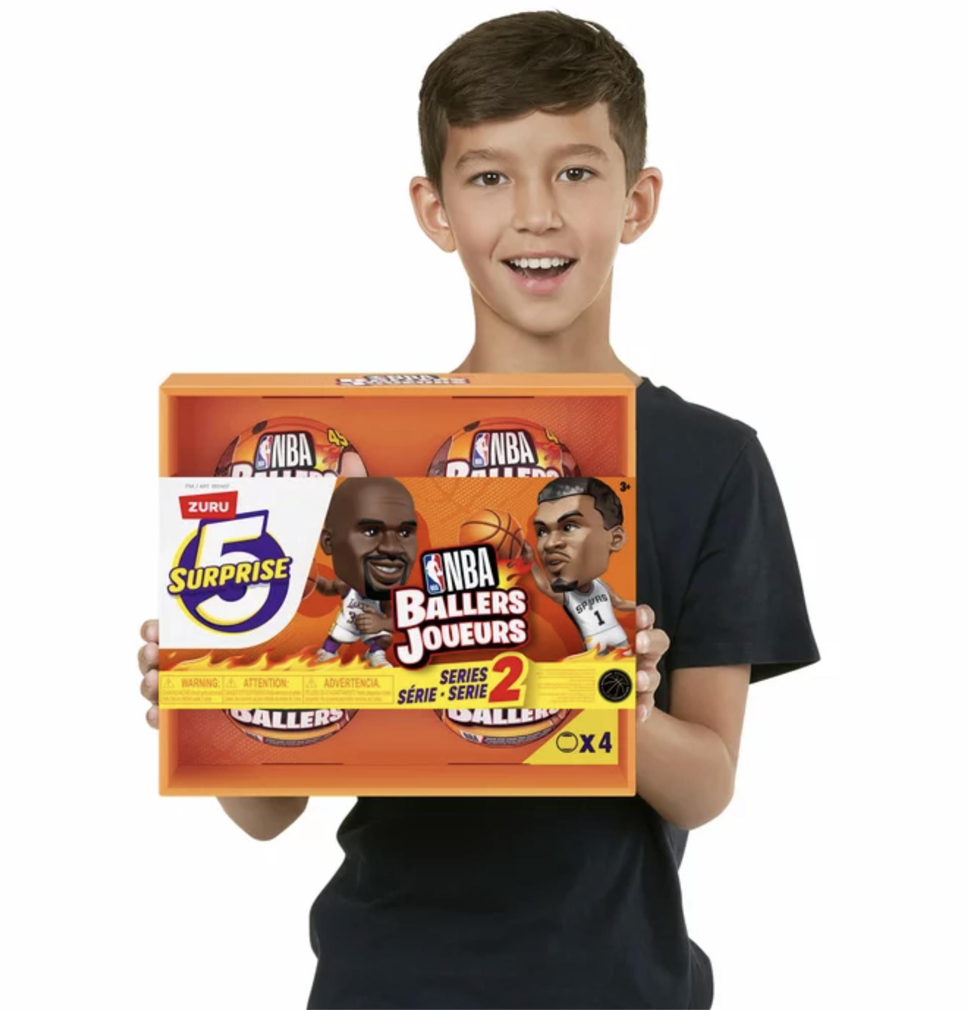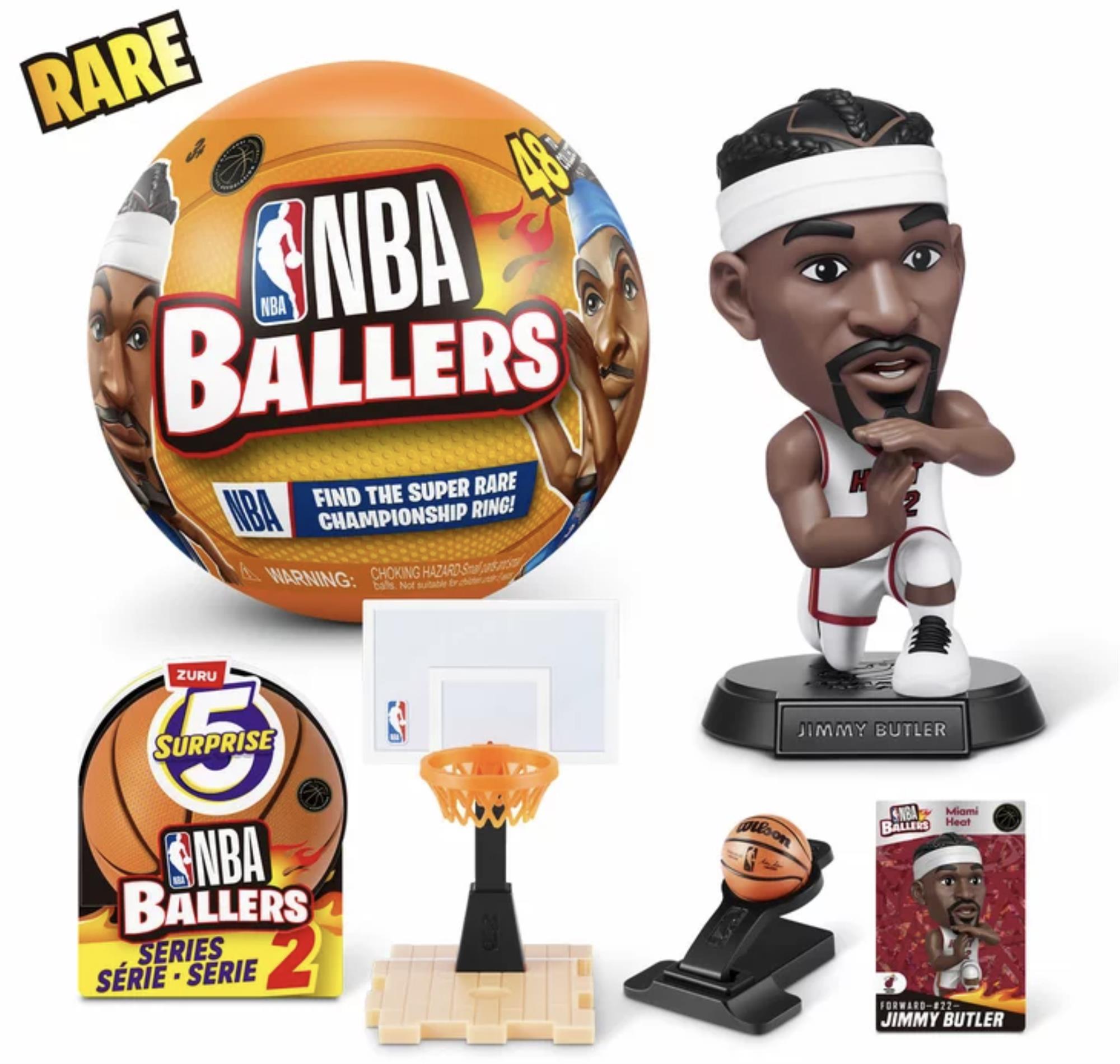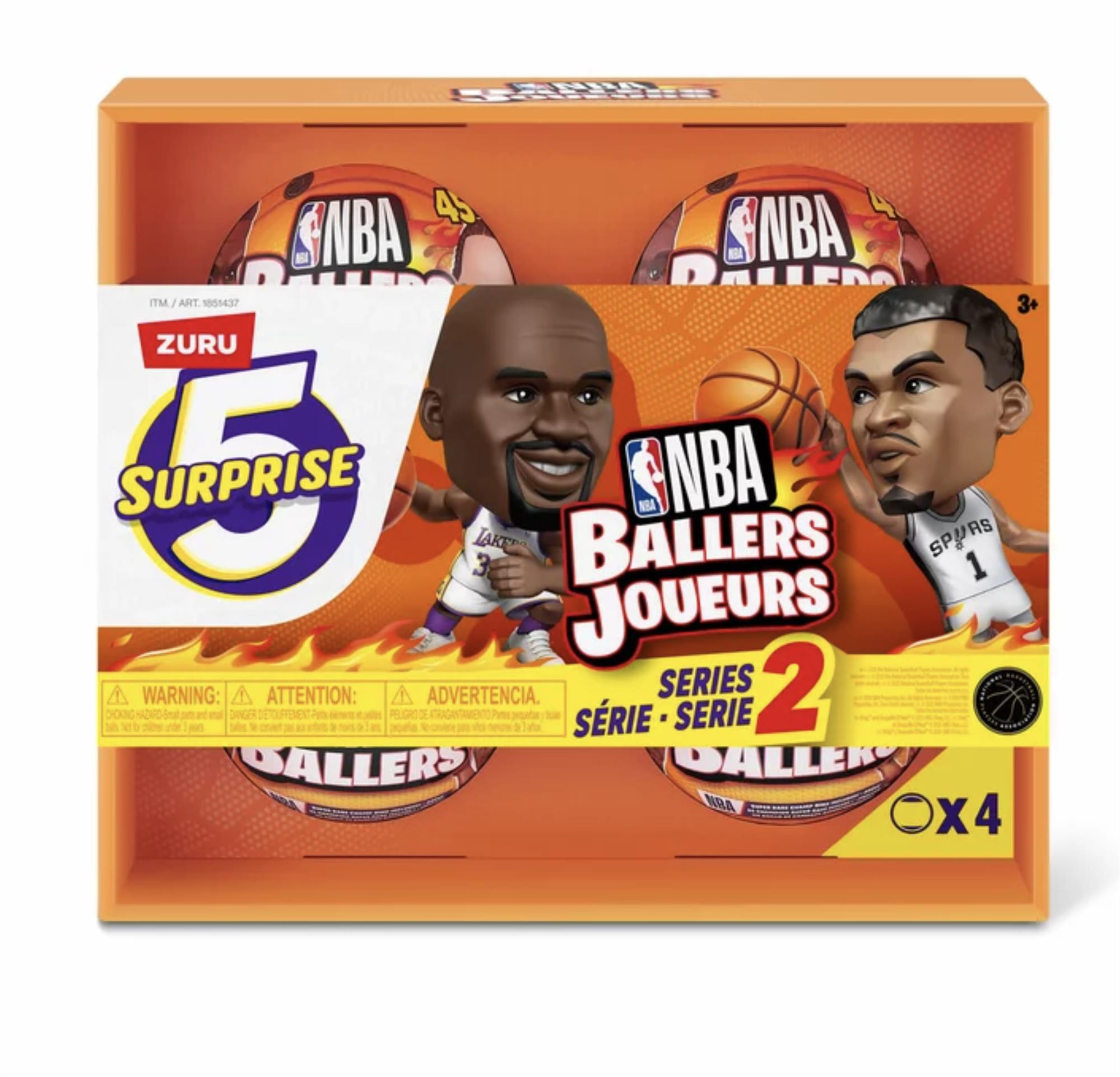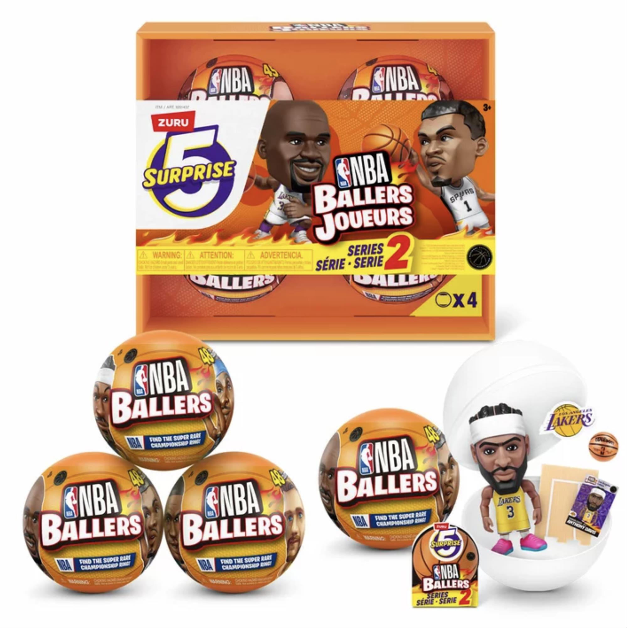 Draft, trade, and collect with 5 Surprise NBA Ballers Series 2, the officially licensed collectible from the NBA! With 36 common players, 9 rares, and 3 super rares to discover, every capsule is a slam dunk waiting to happen. Assemble the ultimate baller squad with each collectible coming with a player poster, a miniature basketball, and 2 epic surprises. Will you unbox the hoop and launcher, trophy or the ultra-rare championship ring? With 48 unique figurines to collect, it’s time to get ballin’ and complete your collection! Perfect for collectors aged 3 and up, don’t miss out on this epic new chapter of NBA fun – get Series 2 today!