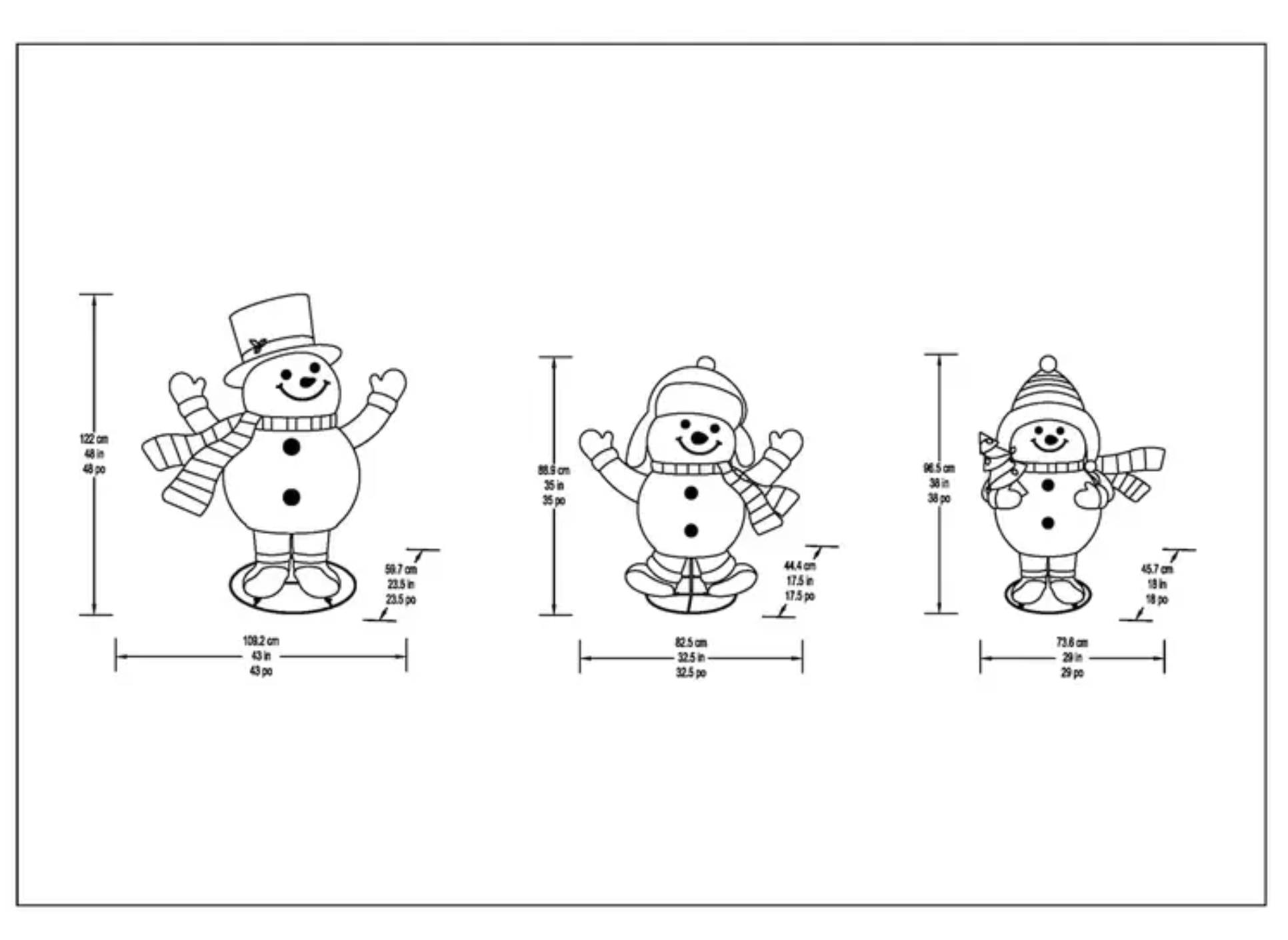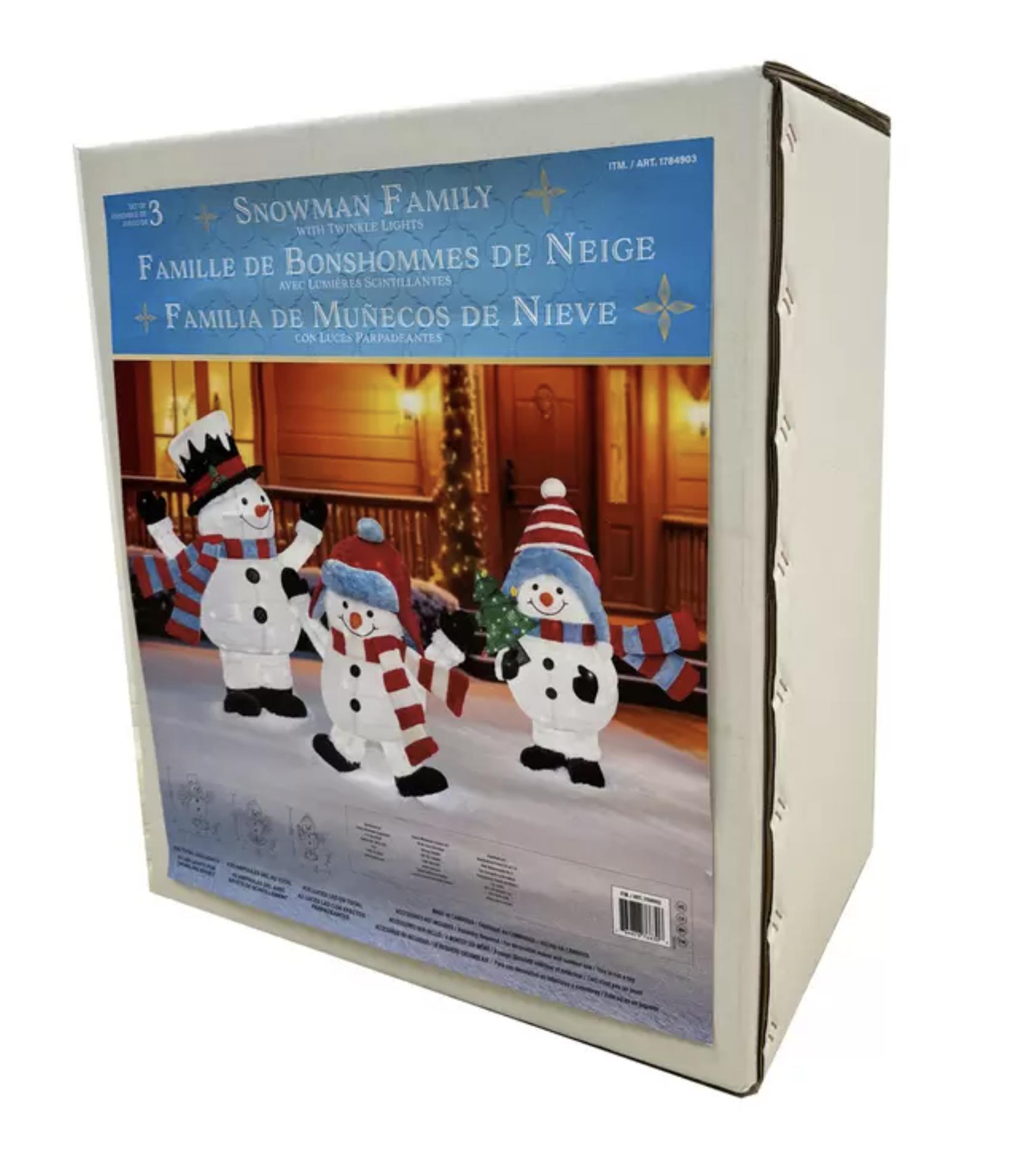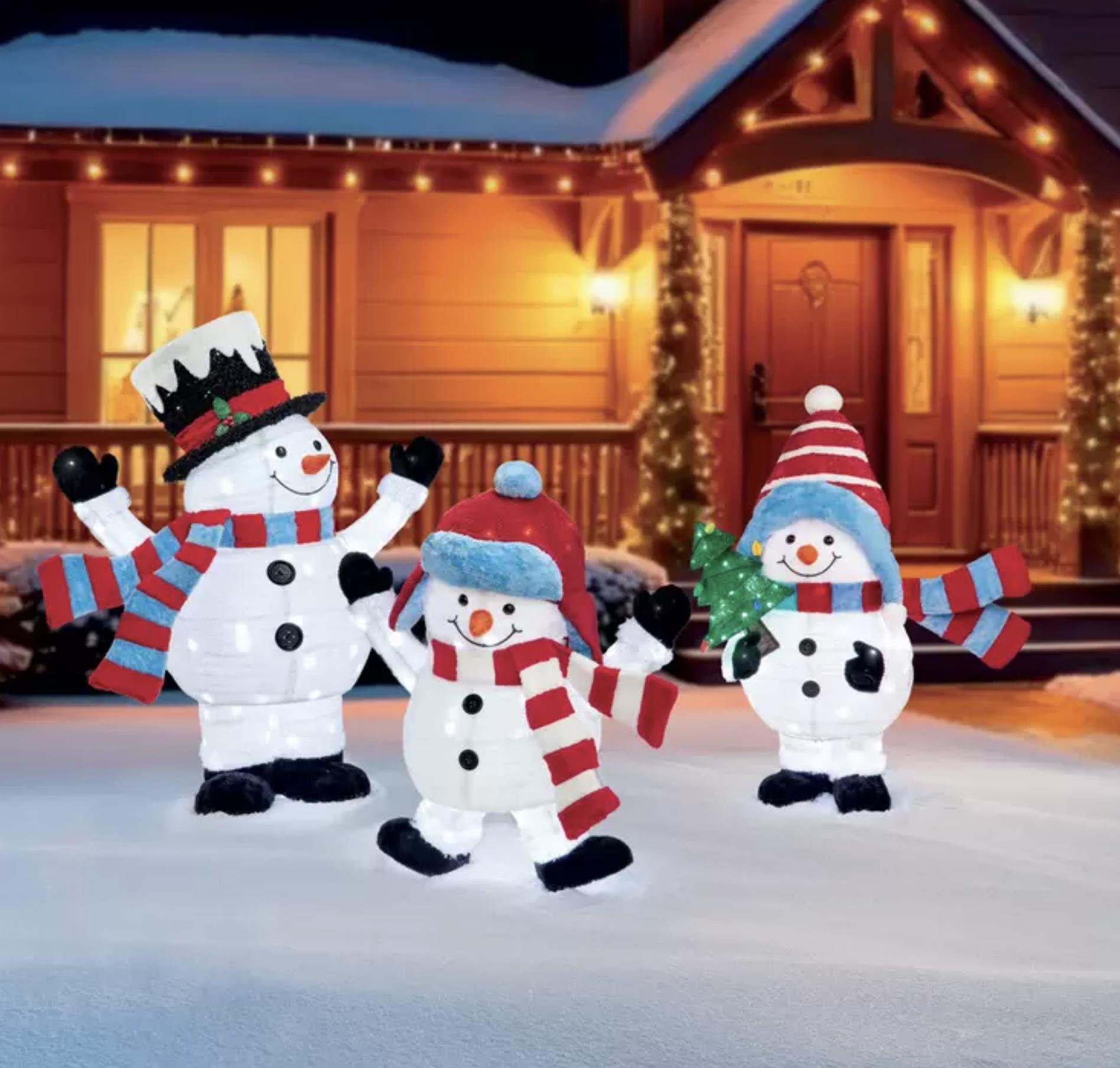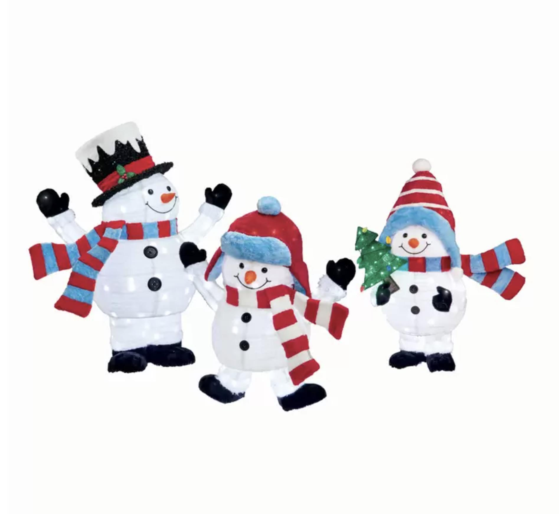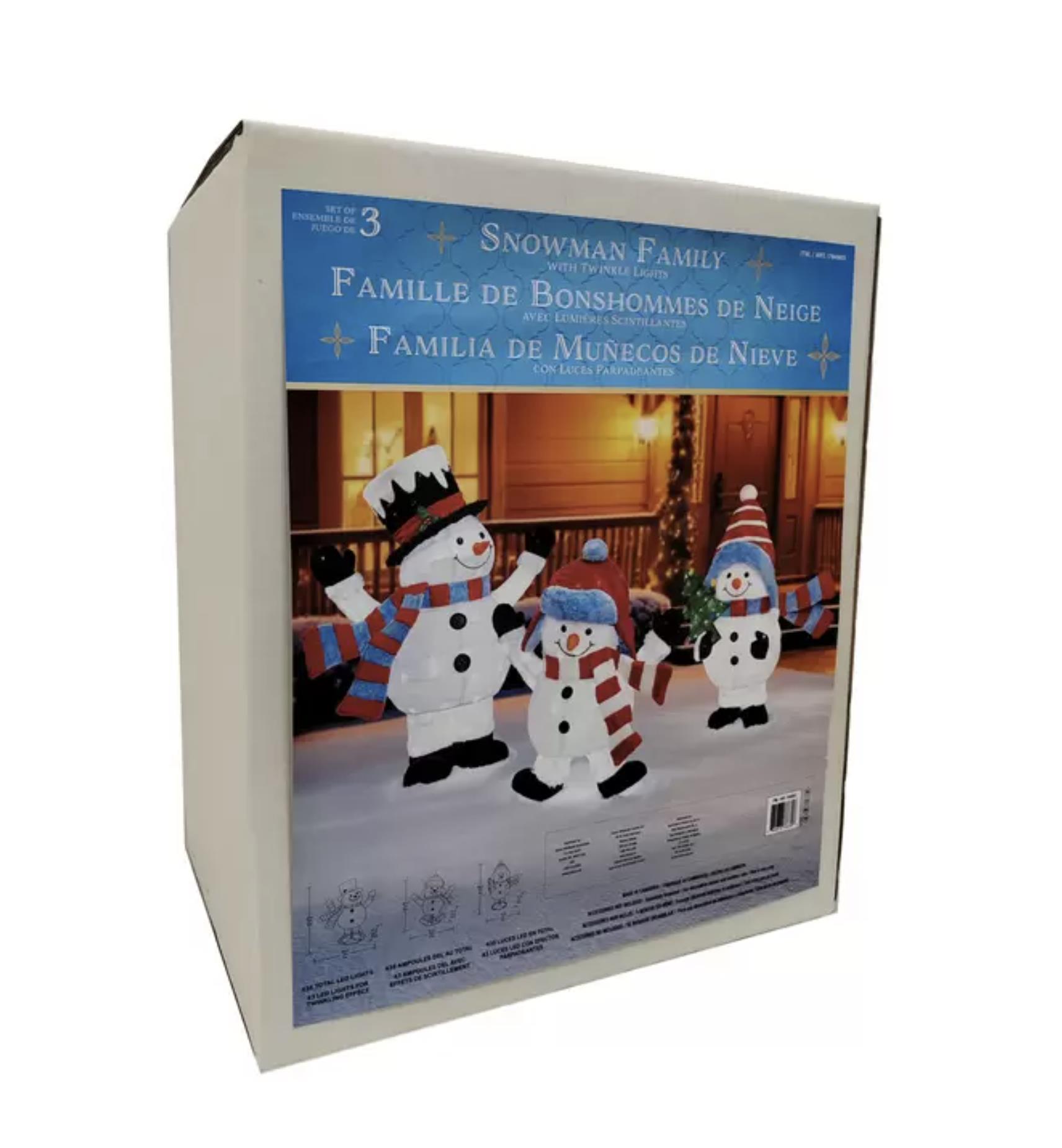 • Festive 3-piece snowman family with bright, cool-touch LED lights