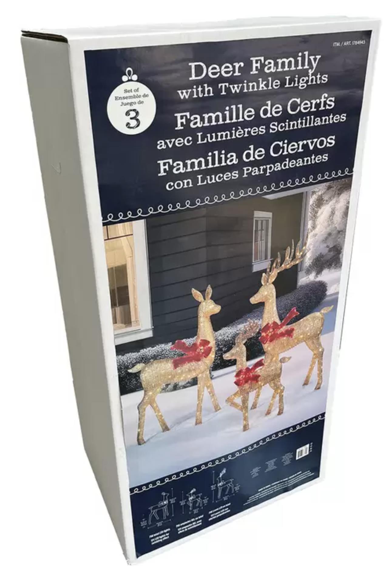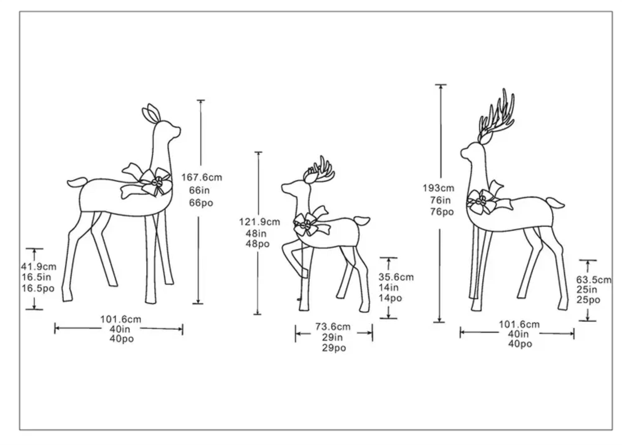 • Set of 3 pre-lit deer: 76″ buck, 66″ doe, and 48″ fawn