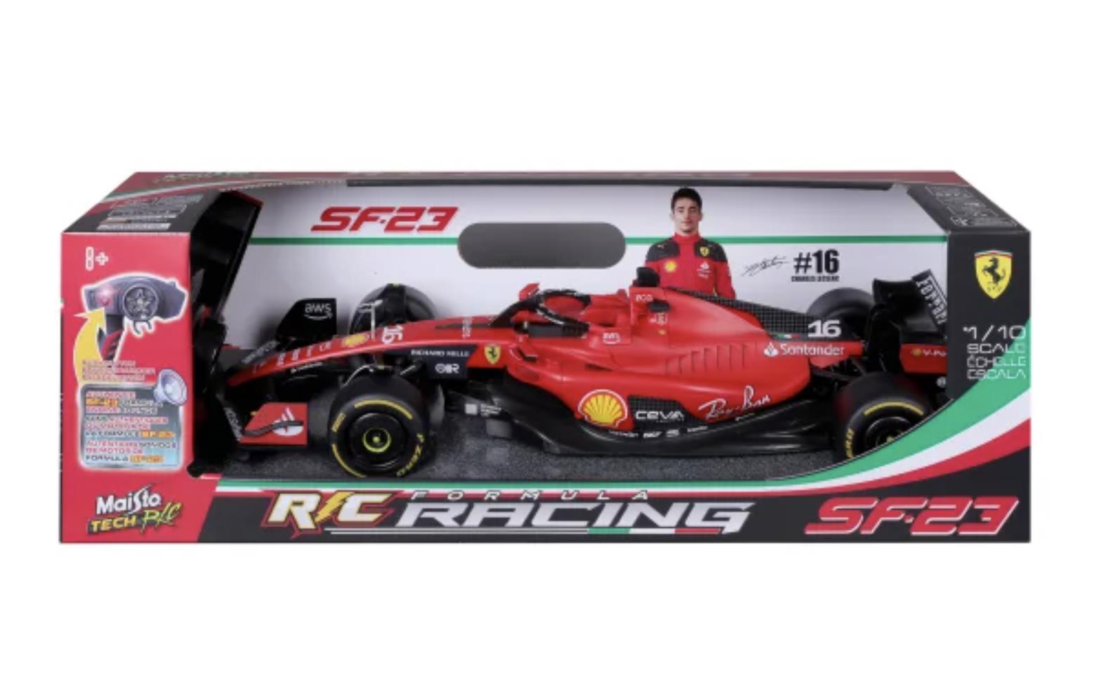 Experience the thrill of racing with this Officially Licensed 1:10 Scale R/C Vehicle. Featuring a 2-speed motor with digital proportional control, authentic SF-23 racing engine sounds, and easy USB rechargeable power, this remote control car is built for speed and excitement. The 2.4 GHz remote control allows up to four players to race simultaneously, ensuring fun competition for all. Ready to run straight out of the box, it includes everything you need for instant action.