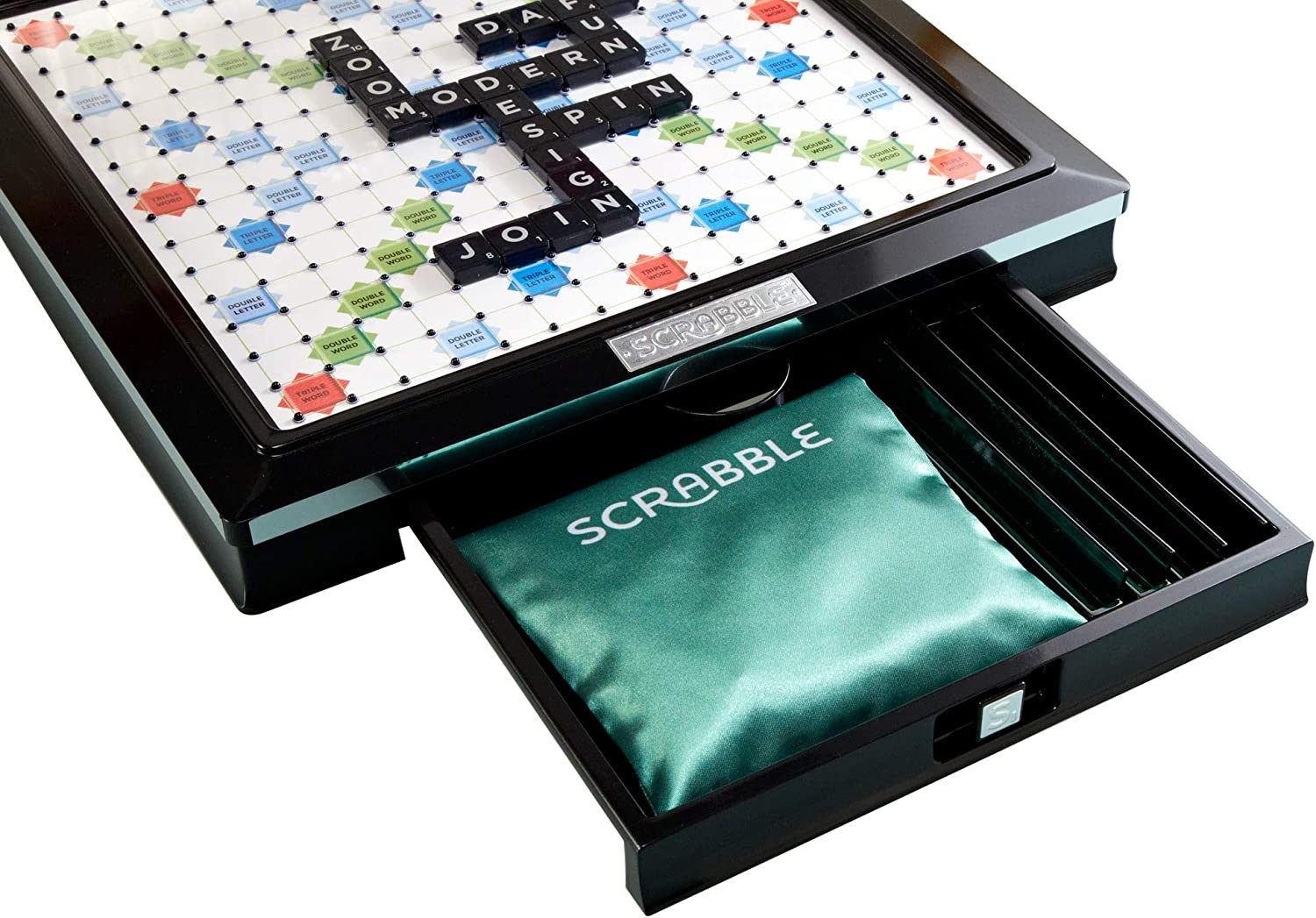 Mattel Scrabble Y9584 Deluxe Set Tile Lock Gameboard Easy Spin Turntable