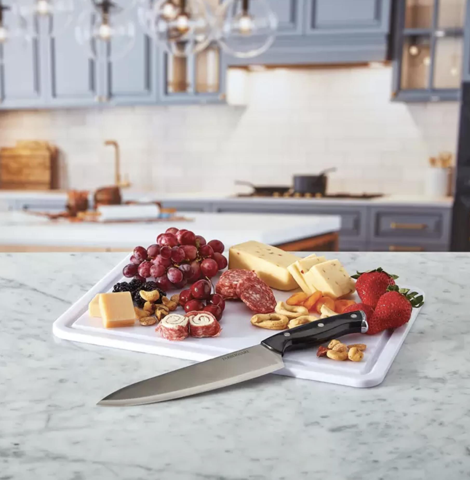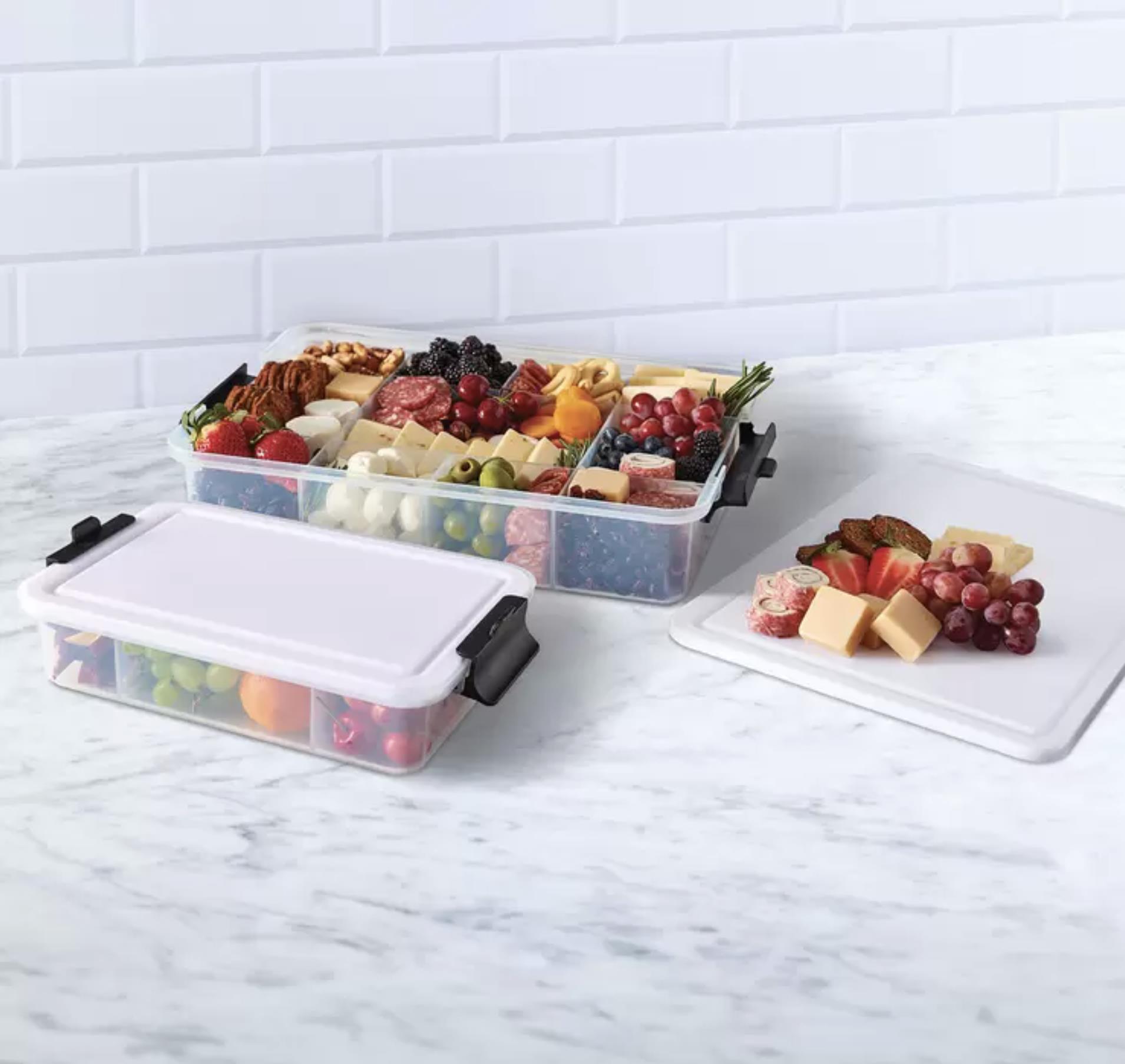 Reversible plastic lids double as cutting boards for easy food prep