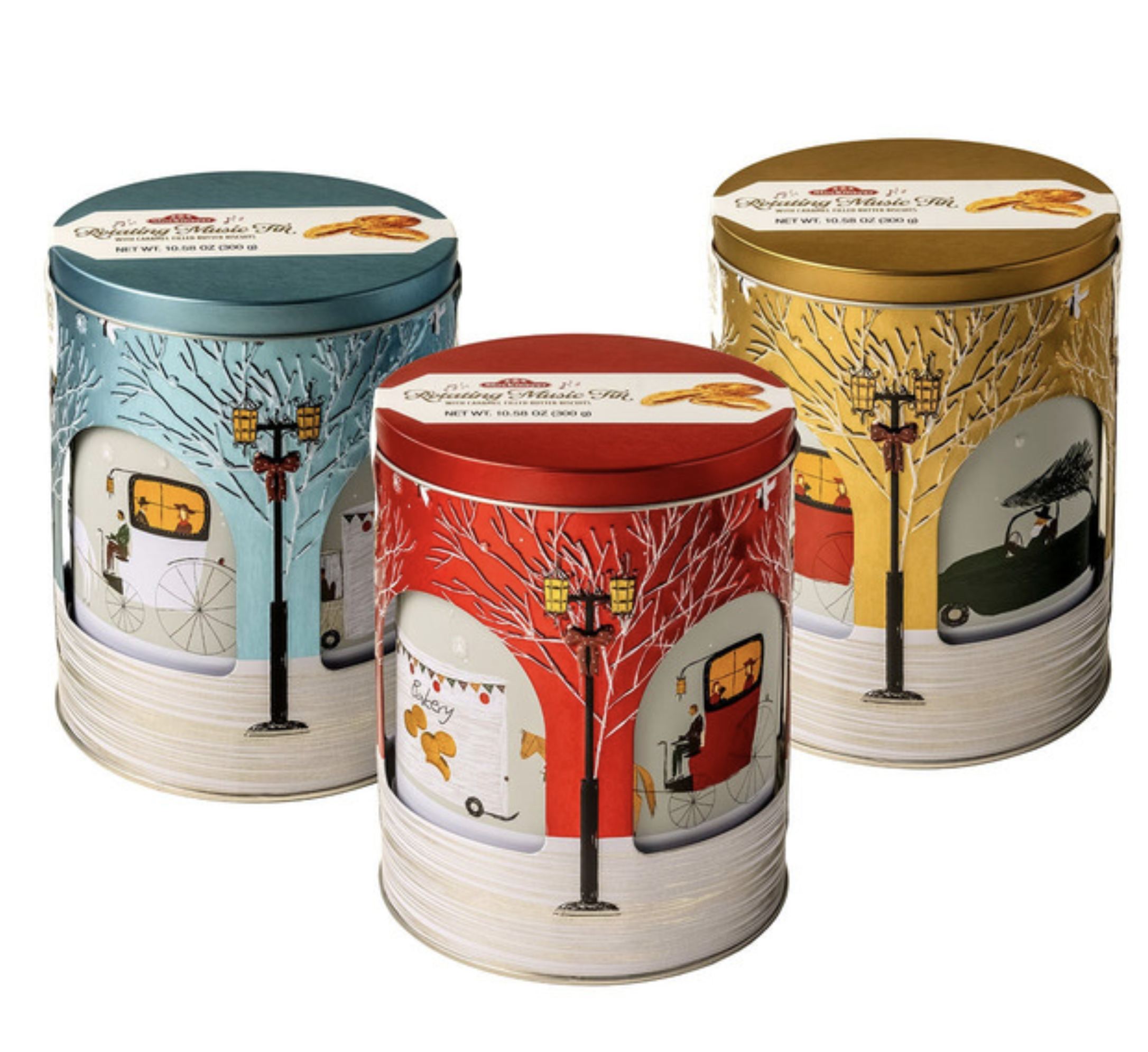 This musical tin makes a wonderful Christmas gift or an ideal festive decoration that can be enjoyed for years to come after the delicious caramel-filled butter biscuits are gone.