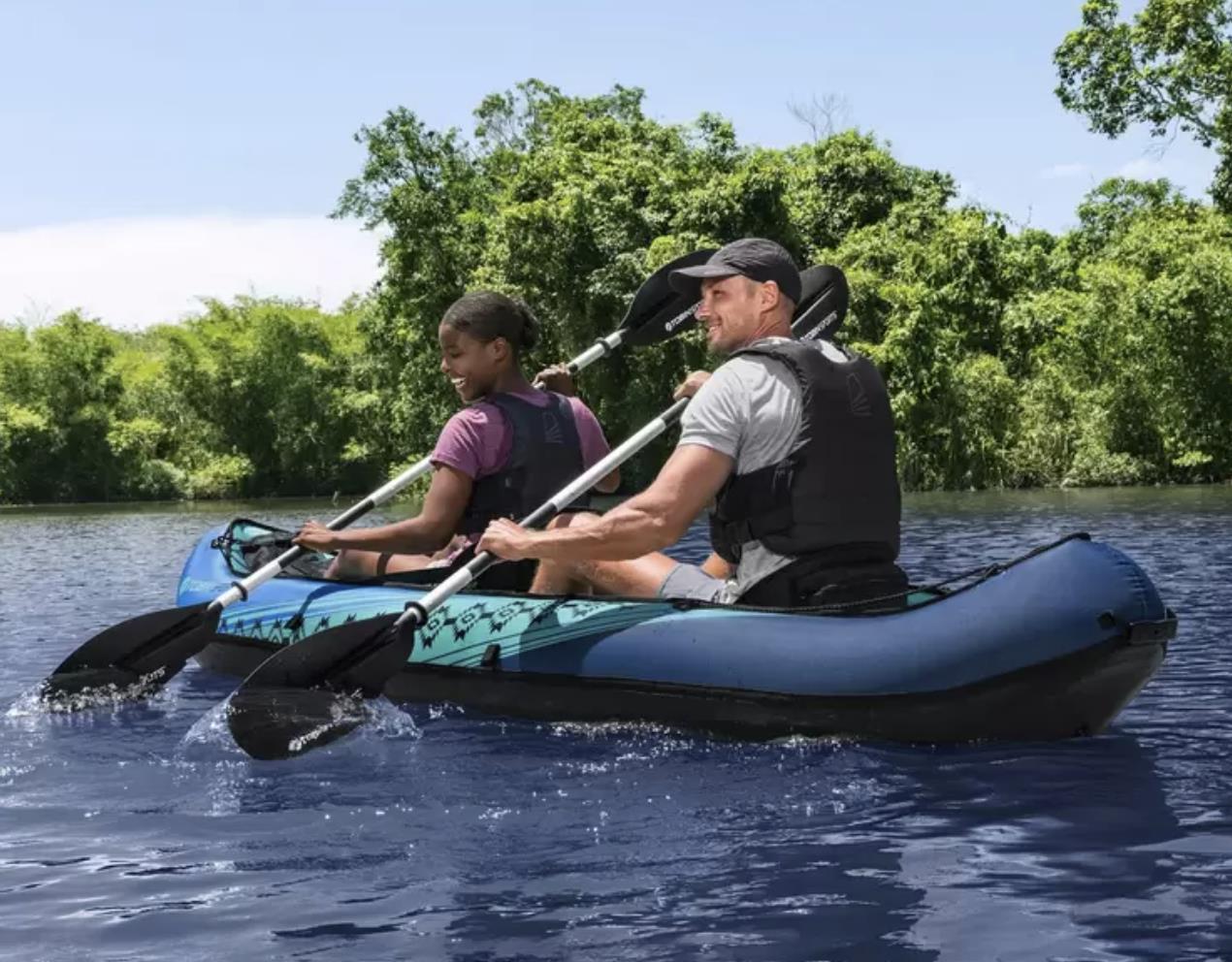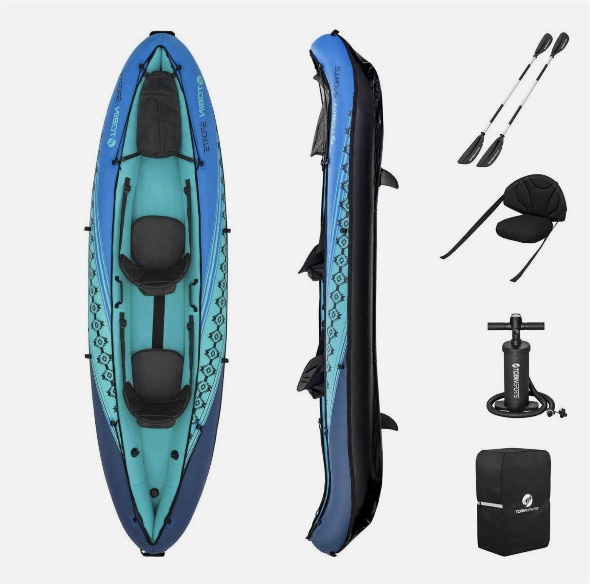 Built for adventure, the Tobin Sports™ Wavebreak Inflatable Kayak offers 2-person capacity, durable nylon construction, and a complete accessory kit. Perfect for rivers, lakes, and sea.